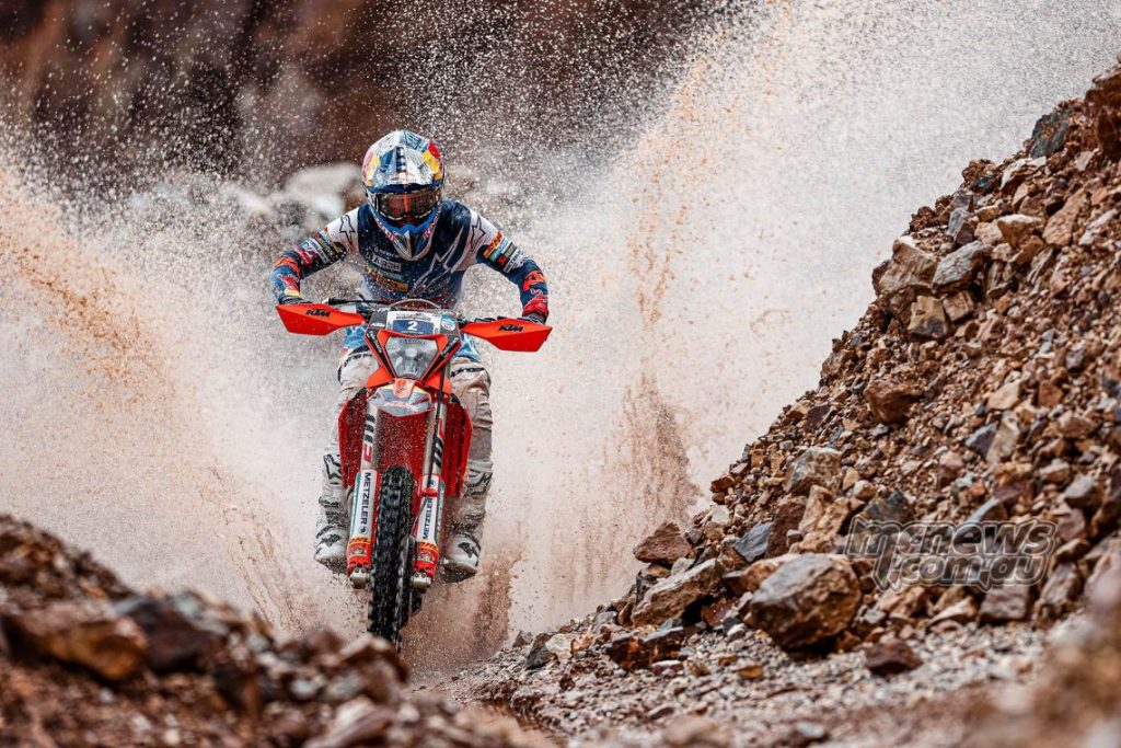 He was followed in by his KTM teammate, Trystan Hart. Mario Roman took third after pipping Hard Enduro Legend Graham Jarvis at the final checkpoint.