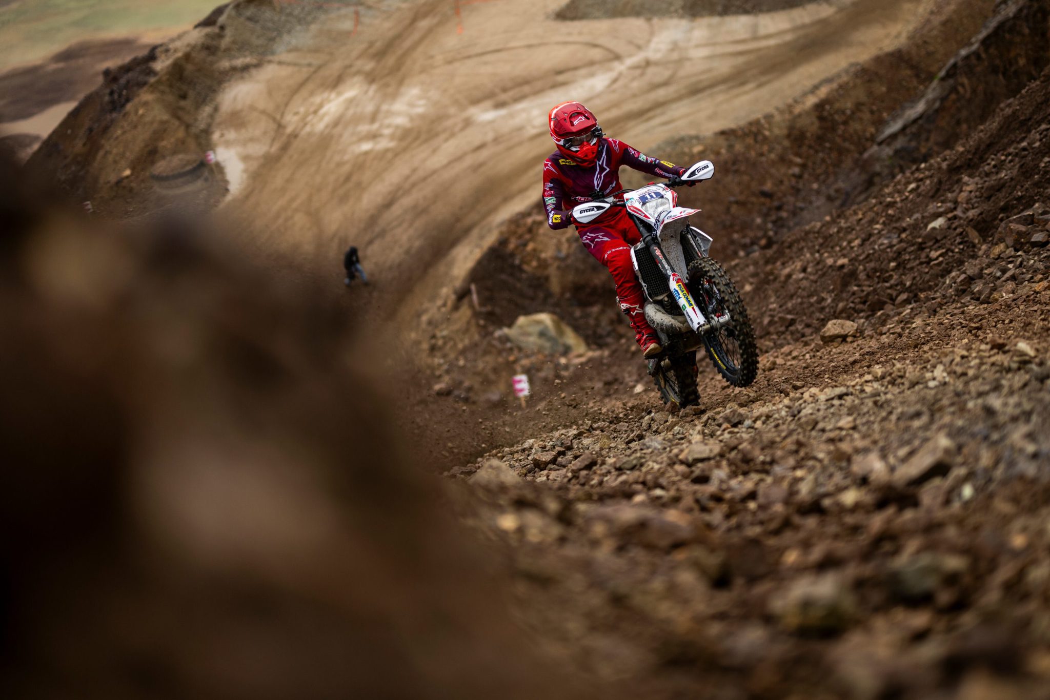 But… Mario Roman had eyes on by the time they reached the Chris’ Stony Party section. Jarvis was third by Udo’s Playground but was a bit tired by the Motorex Highway, using Mario’s help to climb out.
