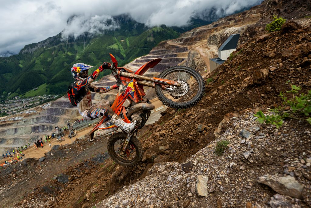 For 2024, race organiser Karl Katoch packed the track with two passes through the boulder-strewn Carl’s Dinner, punctuated with two runs through the Erzberg’s notoriously soggy forests, each trickier than the last. “The toughest Erzberg yet.”