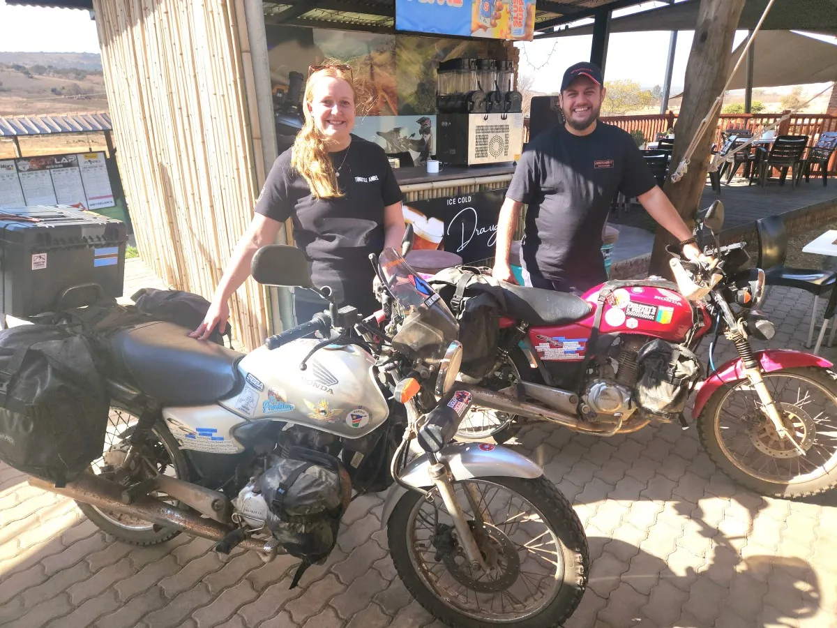 Now, we were going to write a big long story about all of this epic (Yes, if you have ever ridden a small bike for a long time, you’ll know what we mean) adventure, but rather than that, we sat the happy couple down, plied them with biltong and interrupted their story often.