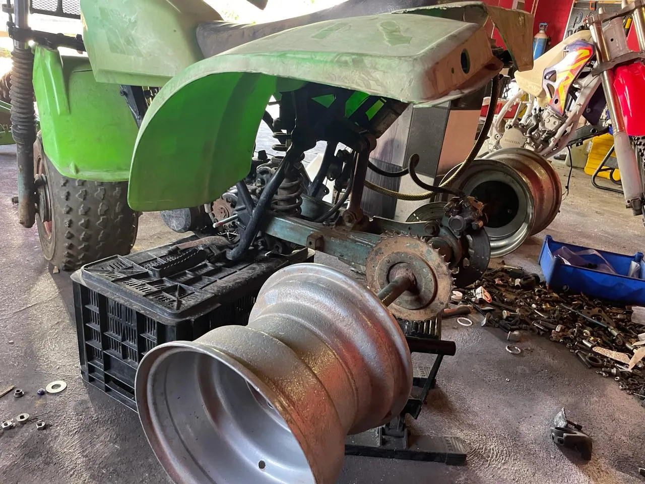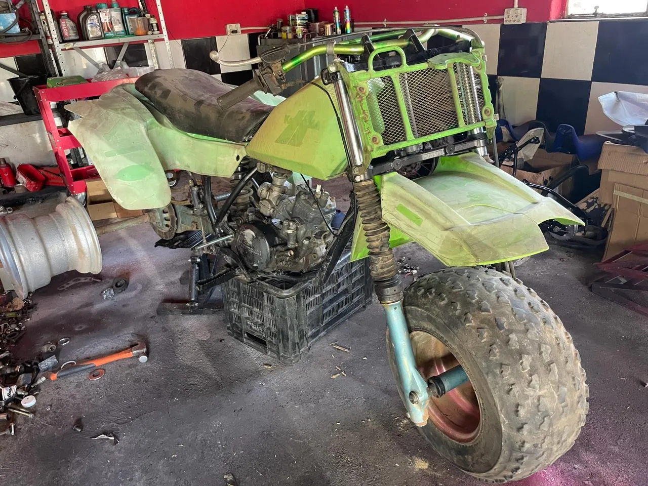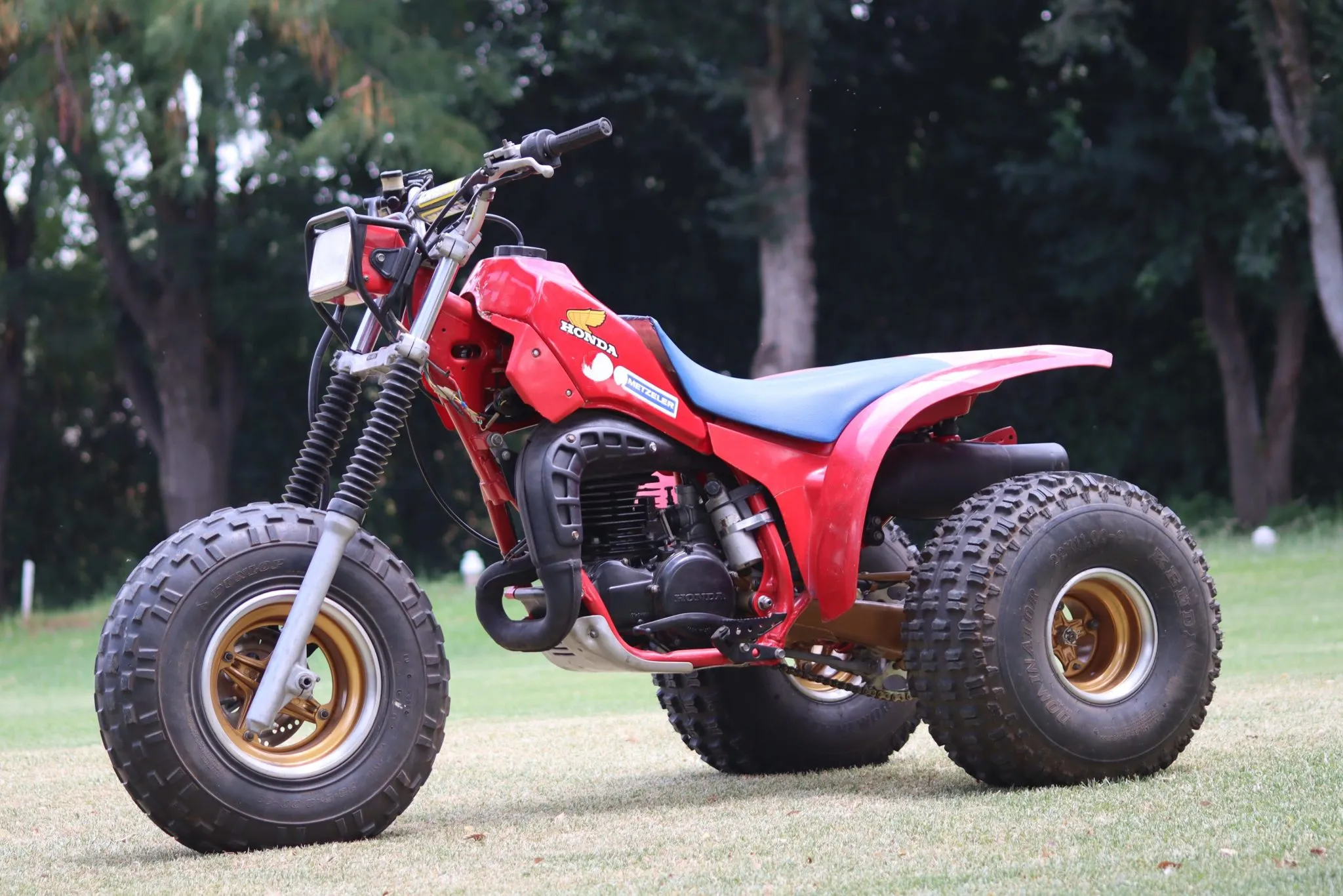 Another of his very rare items is a 1984 Honda ATC 250R second generation three wheeler. Honda’s first ever sports ATC built for competition. This is a true survivor, there has been little done to this old girl and she has clung to life for 40 years. Ty kept it standard and only kept it serviced and running, other than that it is as stock as can be.. The tank has slight damage but overall it still looks damn good. Four years after their inception, 3 wheelers were banned in 1988 and production stopped. And just for fun a little history, Honda created the first ever sit on 3 wheeled ATV in 1969 and was classed as a 1970’s model, called the US90 designed by Osamu Takeuchi, when Honda trademarked the name ATC (All Terrain Cycle) it was renamed as the ATC90.