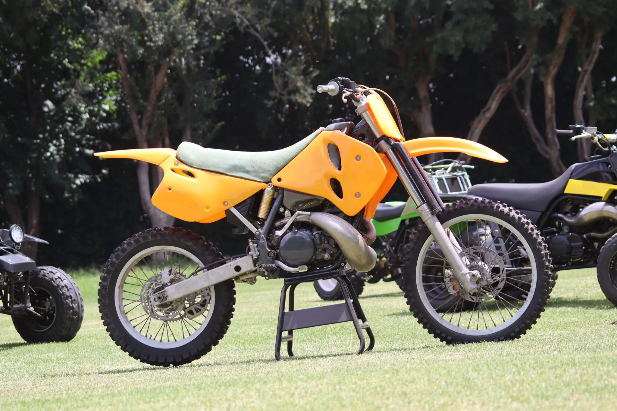 Now, for what we think is the star of the show, the 2000 Kawasaki KX500. Another bike Ty started in lockdown and with some help from a friend of his, rebuilt the KIPS (Kawasaki Integrated Powervalve System) engine, which was also completed before the end of lock down. The Kawasaki KX500 engine was such a great bit of engineering that it was unchanged for 10 years. This beauty now just stands there in Ty’s house, haunting Ty…. until an idea started forming into a plan. This very bike was the main reason Ty and a few co-conspirators got together and started planning the rebirth of vintage dirt bike racing in S.A called the VMX Series. The KX500 was also the bike to win the title in the last ever 500cc Aussie MX by Peter “Reggie” Melton.