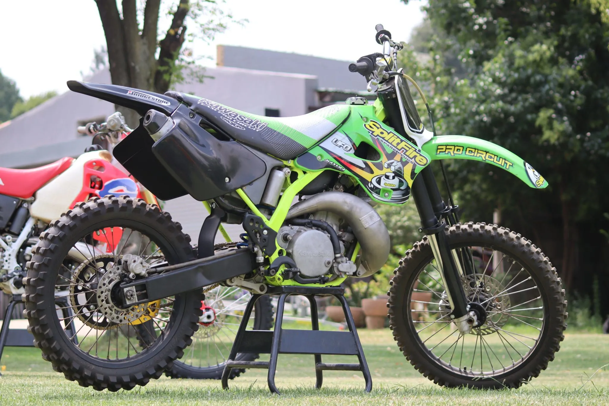 Ty’s first project was the 1997 Kawasaki KX250 that he started before the pandemic lockdown, and he managed to finish it just before we were all finally set free. The bike has the seat and plastics of the original Splitfire/Pro Circuit U.S Race Team from back in the day. With the Pro Circuit Platinum exhaust it looks like it might still be able to go out there and give some of these new bikes a good old school whipping.