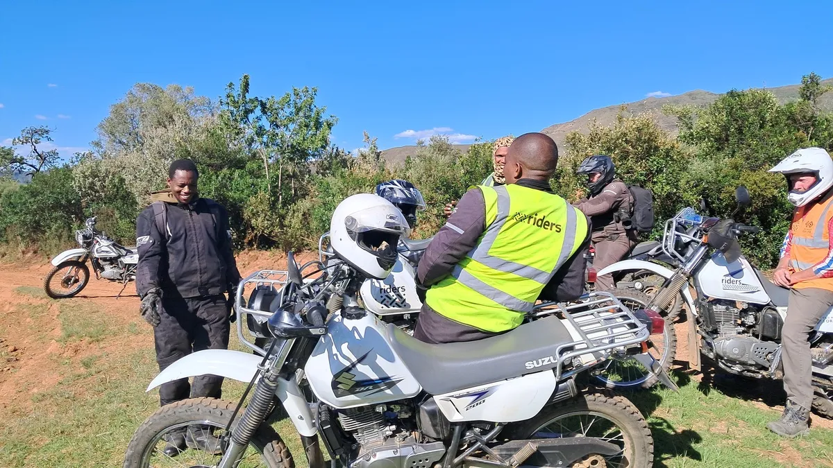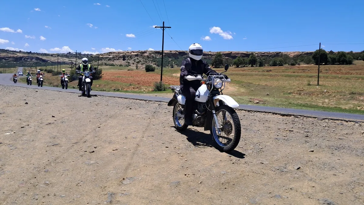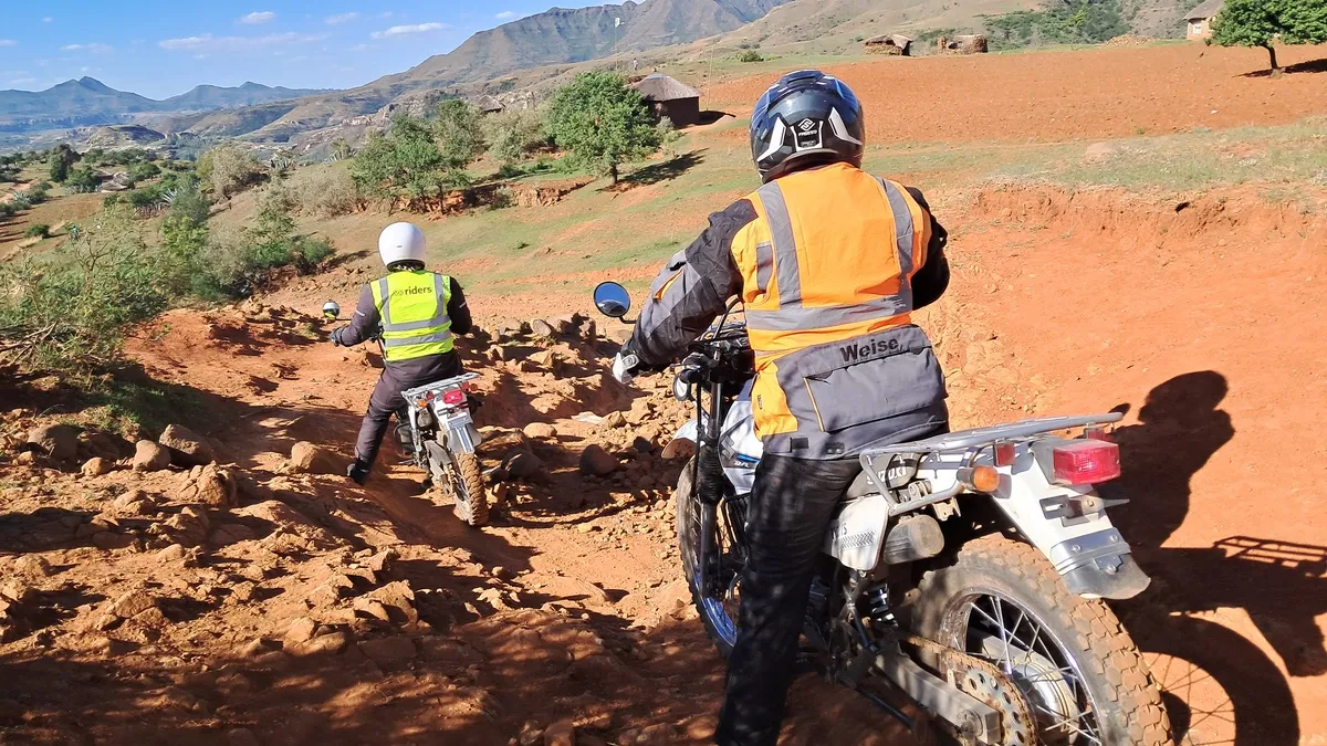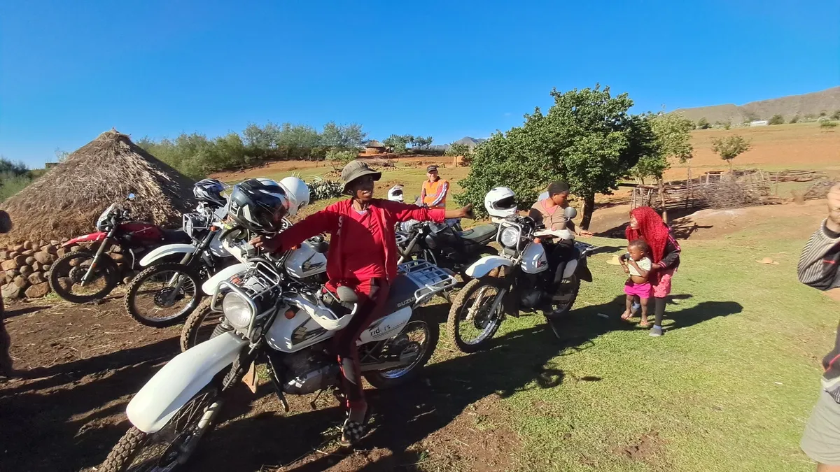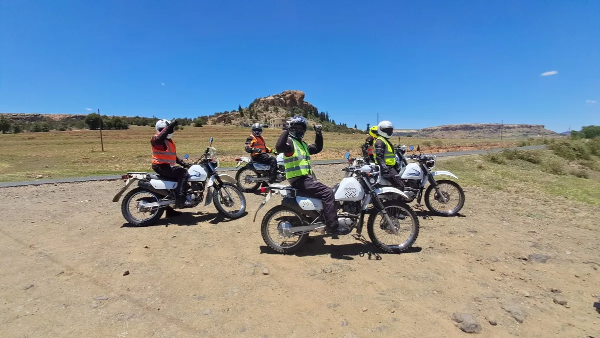 We spent the day with some of the riders from her team. And it was genuinely a full day – 220KMs in the saddle from Maseru and back to visit a village perched in the middle of nowhere. We were joined by a squadron of riders on a Sunday who guided us along – and you can really see the passion that these guys have for the job.