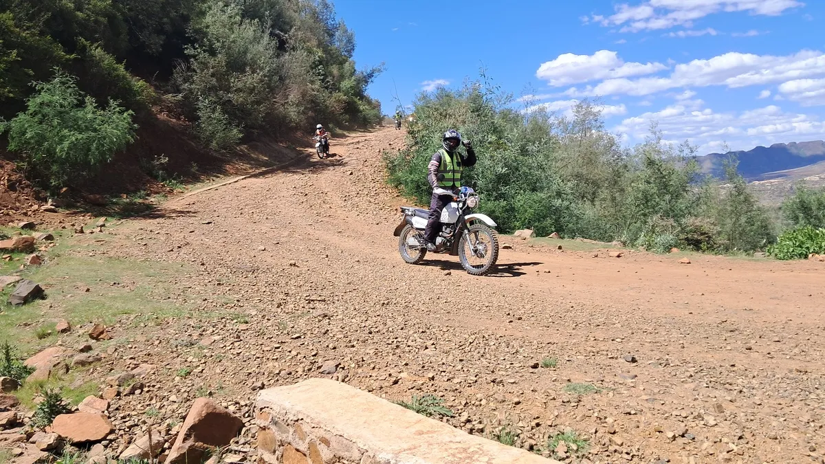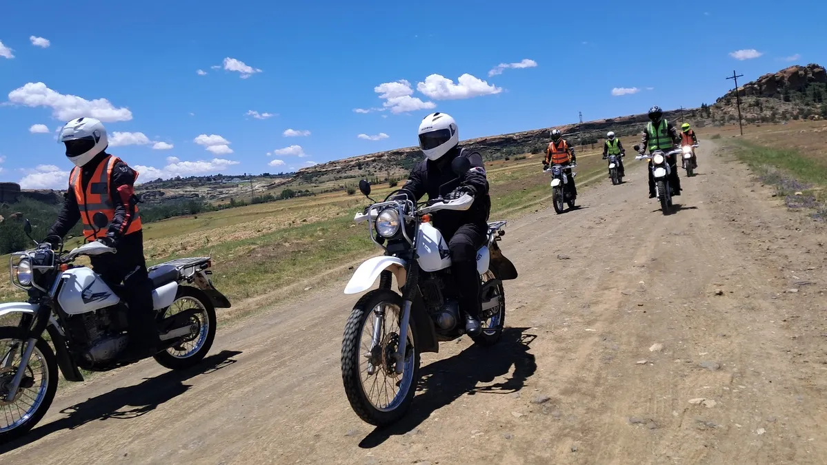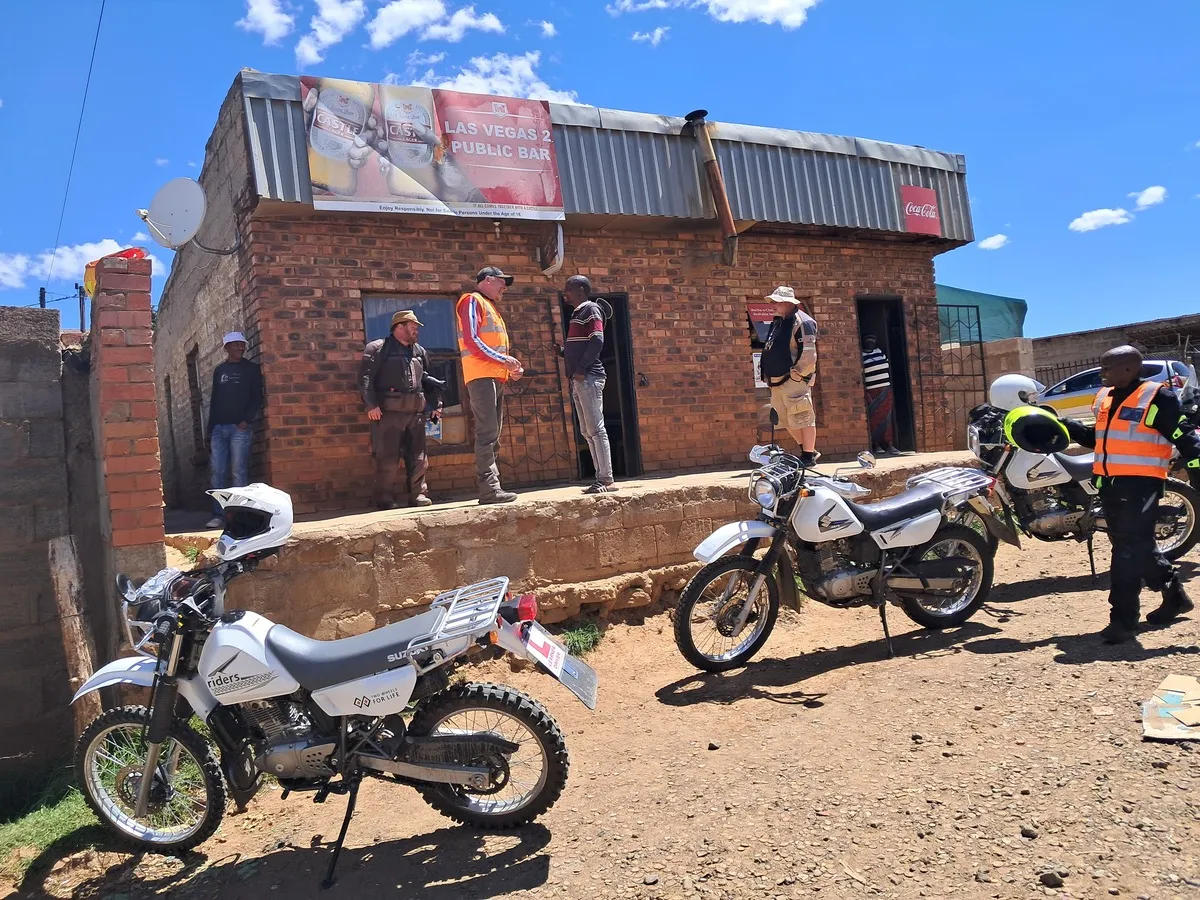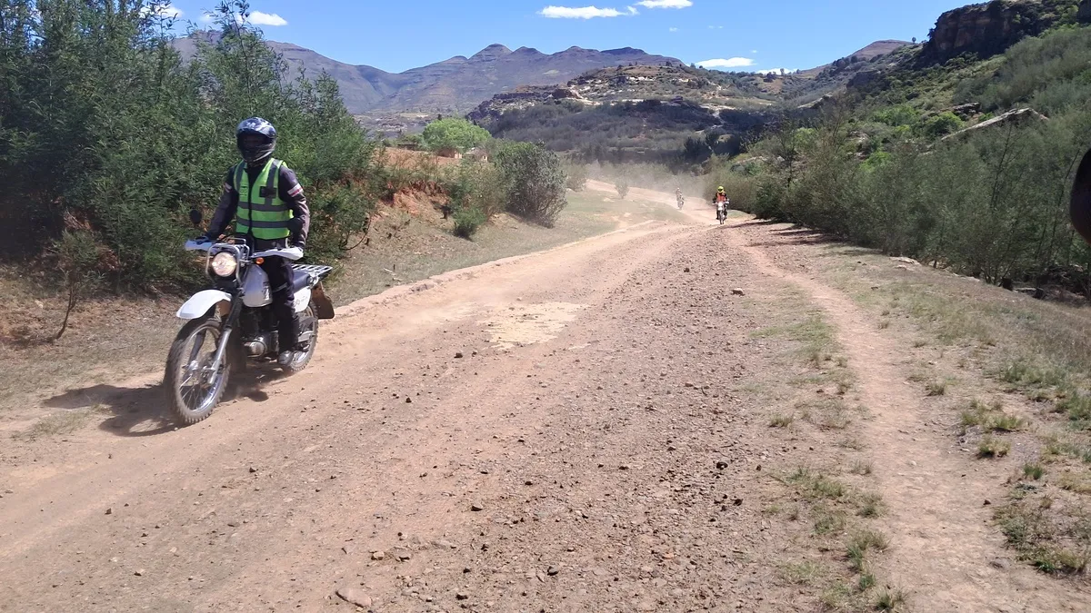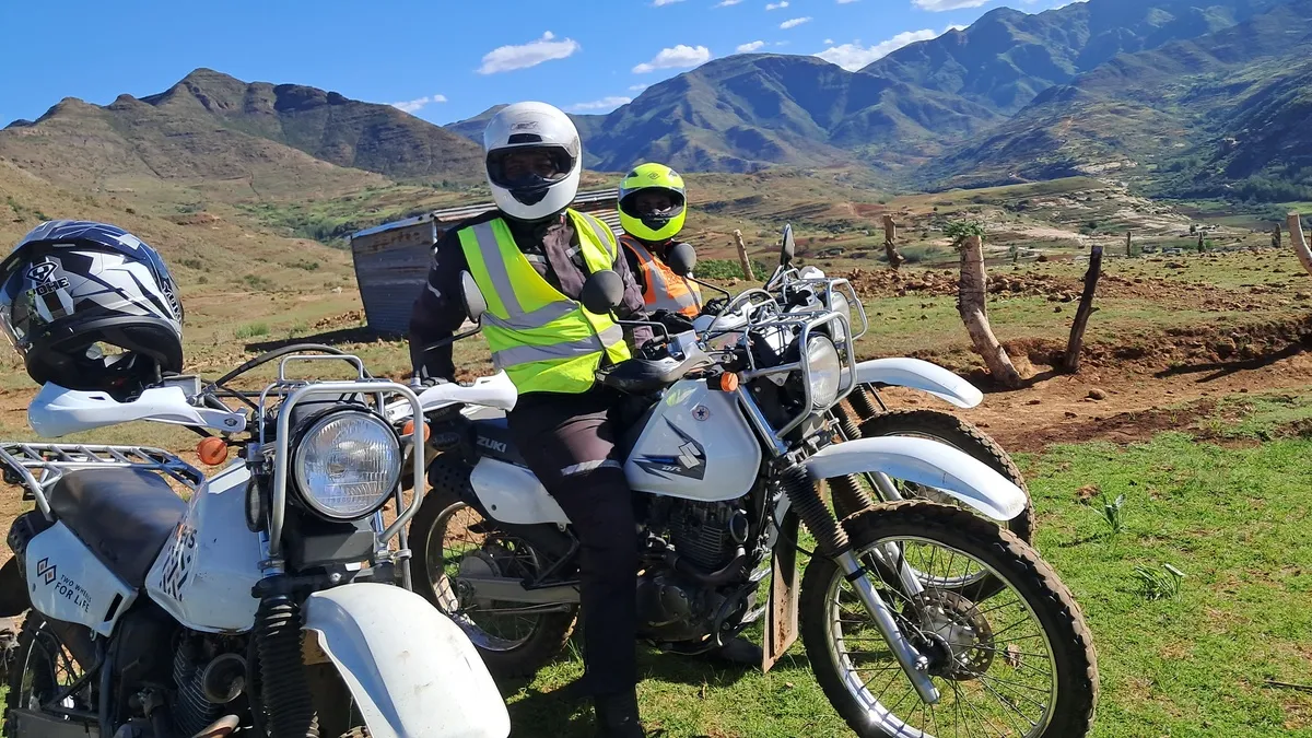 We spent the day with some of the riders from her team. And it was genuinely a full day – 220KMs in the saddle from Maseru and back to visit a village perched in the middle of nowhere. We were joined by a squadron of riders on a Sunday who guided us along – and you can really see the passion that these guys have for the job.