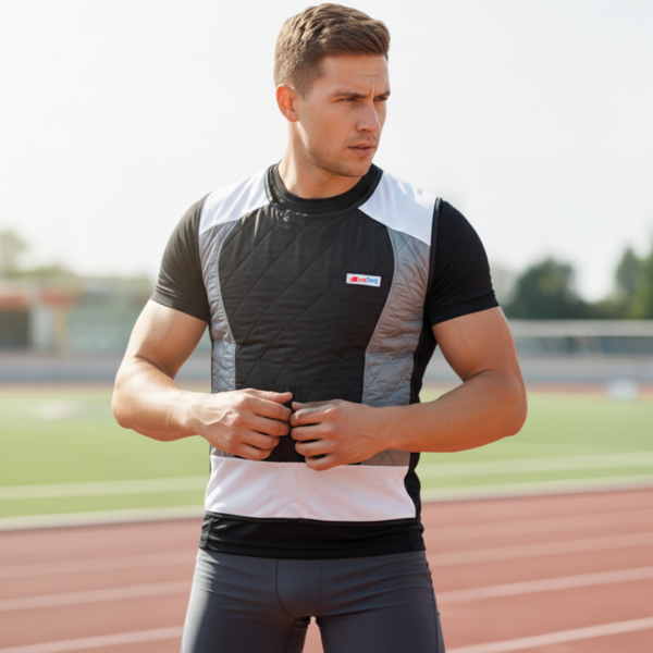 The vests are lightweight, easy to wear, and allow full freedom of movement. Their elastic side panels ensure a snug fit without restricting mobility. Although highly effective in dry heat, performance may decrease in very humid conditions, where evaporation is limited.