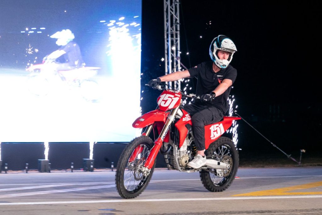 The event then moved outside, where a grandstand had been erected in front of the main straight for the latest product unveiling. For the Ducati section, King of the Whip competitor Dalton Venter rode into the spotlight on his Desmo 450 MX bike that was used for King Of The Whip. Michael Schlabitz, Ducati’s Head of Off-road from the Bologna factory, gave some insights into the background of Ducati’s first foray into the world of off-road machines, and finished by announcing that Ducati will be the title sponsor for the King of the Whip competition in 2026.