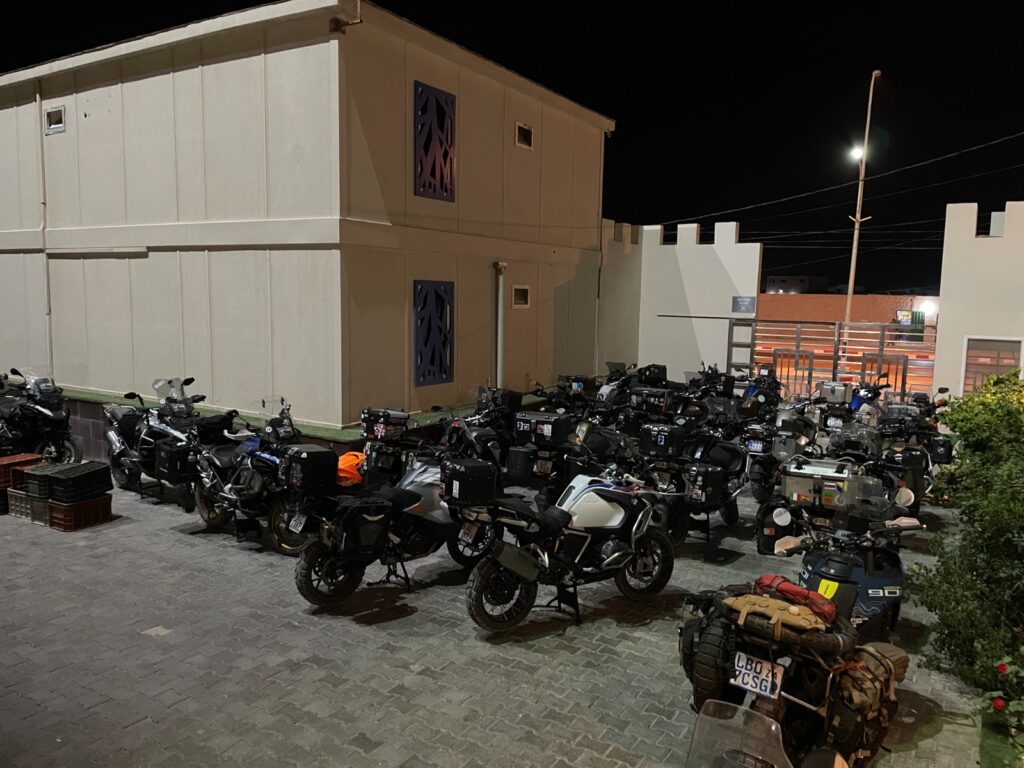 It was 700km+ of beautiful freeways where we experienced why Europeans lock up their bikes in winter or take them to Africa to ride. It was freezing and wet. We were kitted for Southern hemisphere summer riding through the equator and I’d already lost 2 pairs of gloves so was riding with motocross pieces of cloth.