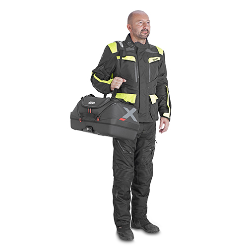 Safe, weather and dust proof storage on any motorcycle is always a challenge unless you are on a fully dressed tourer, so good quality, well priced motorcycle luggage is always a point of interest. GIVI is pretty much a household name worldwide when it comes to motorcycle luggage. The XL08 soft top case is designed for touring enthusiasts with an easy to install using the fixing system with Monokey plate. It is waterproof and has a 40-litre load capacity and looks really good as well. The cutting-edge design focuses on practicality and ease of use, with materials designed to ensure maximum performance over long distances. The main opening with double slider conceals the product’s crowning feature, a removable water-resistant inner bag with IPX5 impermeability, (resistant to heavy rain and extreme conditions), for taking all the essentials with you without having to release the top case. The two spacious side pockets are easily accessible, and, to increase the available space, the XL08 top case is complete with double straps on the upper part to secure any additional load, for example if the rider wants to keep a softshell jacket or rain gear within reach. The rear mesh pocket makes it possible to stow gloves and other items when parked. The XL08 rear top case comes complete with a shoulder strap and handles for carrying, how lekker is that, your tail bag becomes a tog bag, with a simple twist of a key on the MONOKEY® plate, for you to easily move it from your bike to your diggs and back. The attractive reflective inserts increase visibility and safety at night and in poorly lit areas. And it is constructed from high end, heavy duty materials such as 1200D W/R polyester, TPU and nylon, 1680D PU coated polyester, highly UV-resistant exterior materials (UV TESTED 1,500 hrs.) and is Compatible with all MONOKEY® plates.