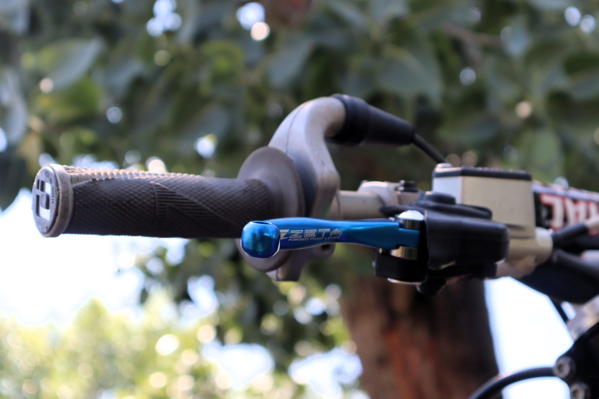Up front, he opted to go with renthals 999 bend bars, just suits his riding style. He also splashed out on Renthal unbreakable, foldable lever sets.