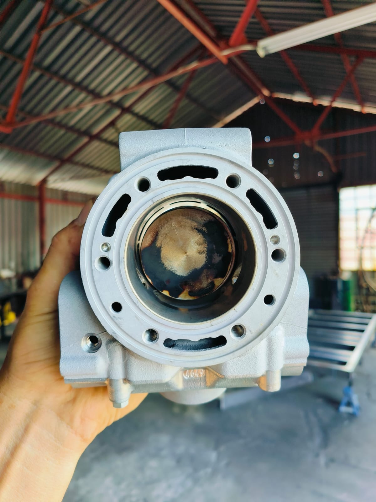 The top end was removed, and re-nickasiled with a 150 piston from the KTM powerparts catalogue. This bumps up the power from 38 HP to 42.