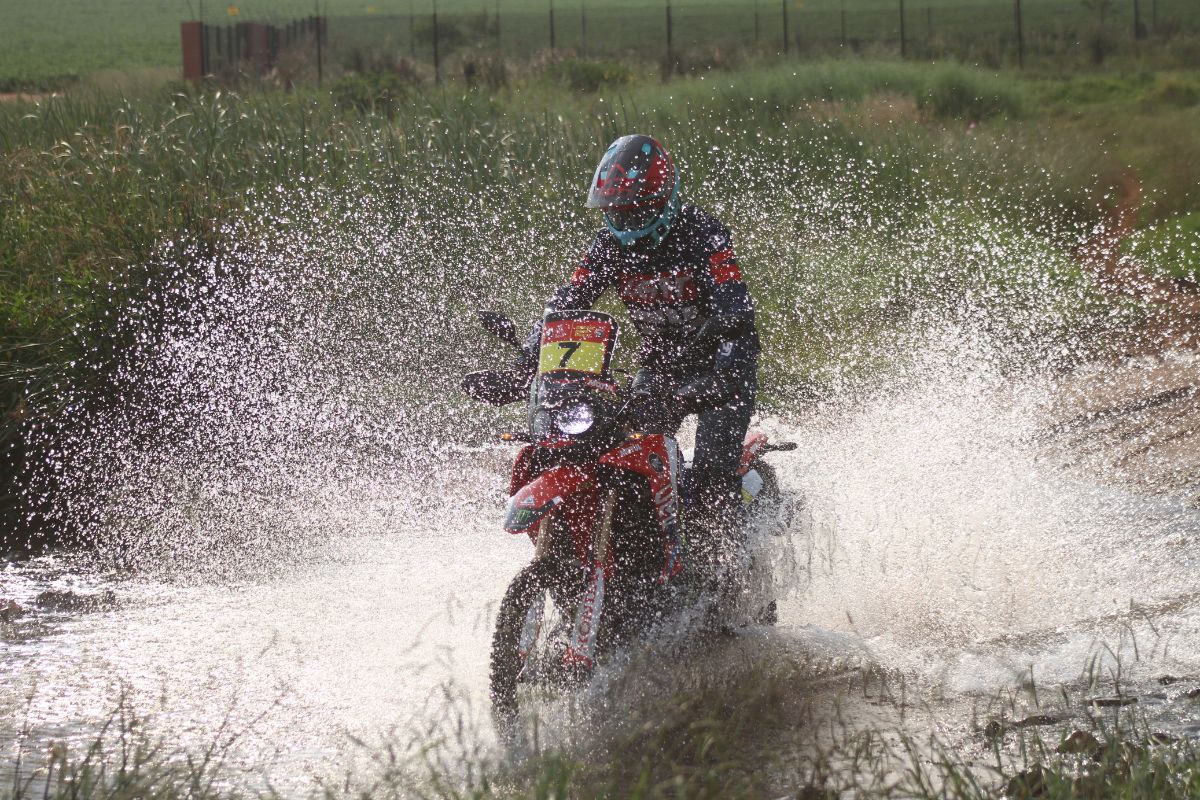 To answer that question, we sent him tearing along the dirt, warning him frequently that this bike still needed to be used for Honda’s road show to all the dealers.