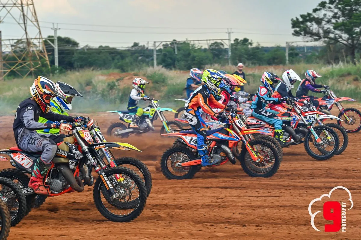 With the scream of two-stroke engines, the kids inthe 65cc class all rushed into the first corner. As the dust settled #104 Richard Smith crossed the line and took 1st place, #20 Luan Jordaan finished 2nd and #333 Parker Cik placed 3rd.