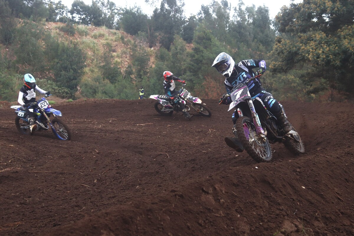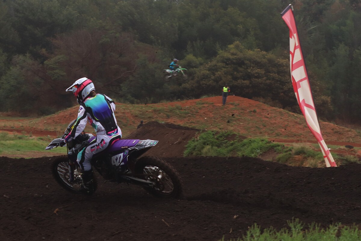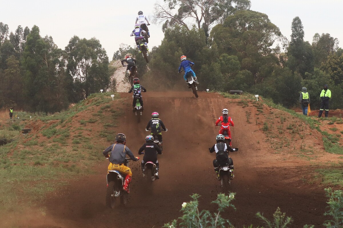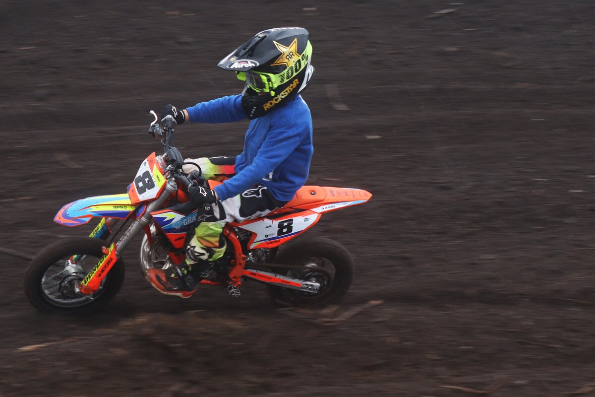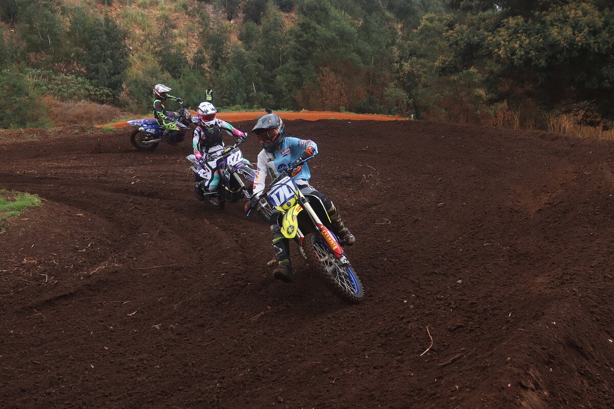 MX 50cc JNR & 50cc SNR. 50cc JNR Heat 1. The juniors lined up alongside the senior riders, the gate dropped, and the race was on. #8 Paul Graven set a strong pace from the start and rode his way to 1st place. #18 Garry Hamer took 2nd, followed by #112 Logan Fulton in 3rd. Heat 2. This time around, Fulton had a much better run, outpacing his competitors to claim the win. Coming through in 2nd was Hamer, and #14 Milan le Roux finished 3rd.