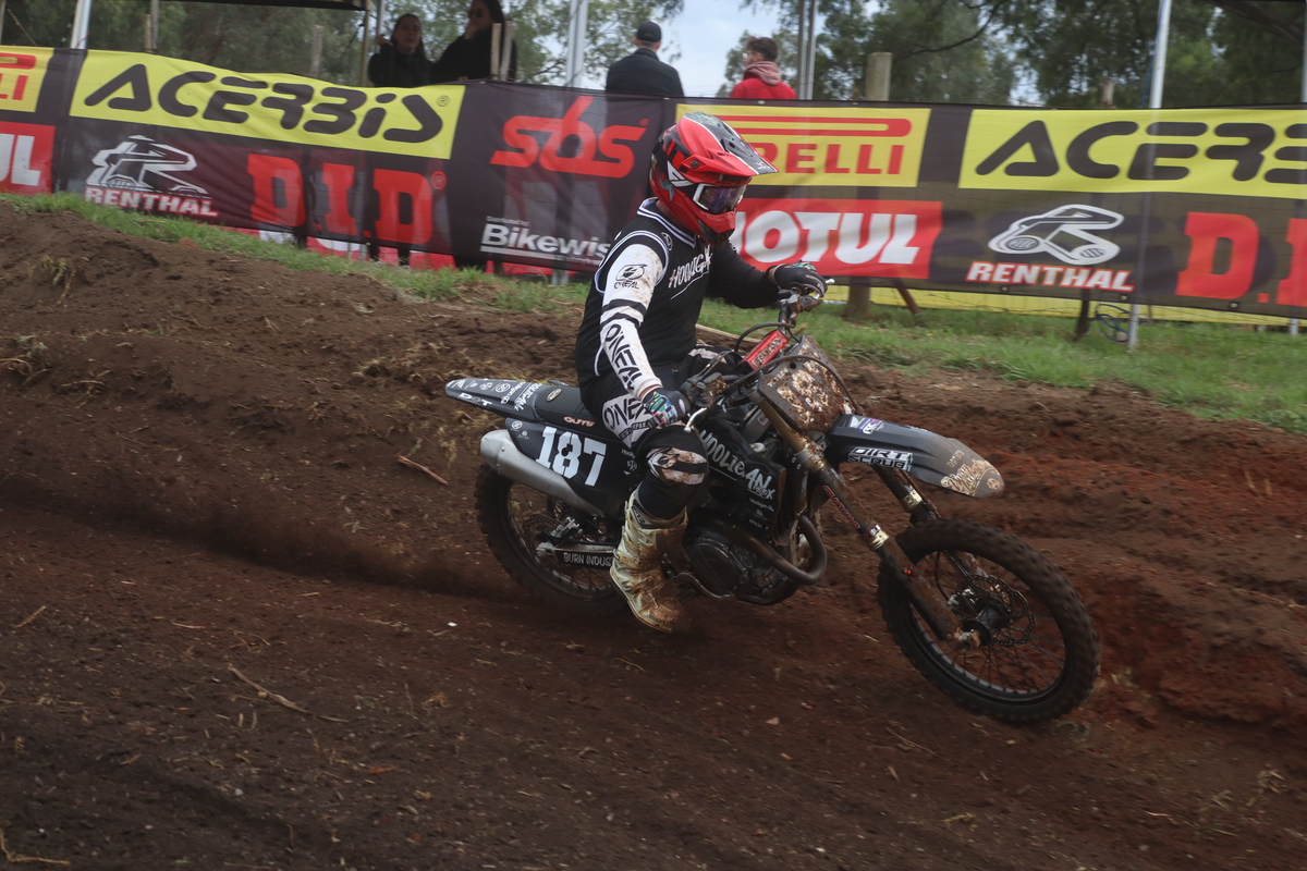 MX1 & MX Support. MX1. Heat 1. The top-tier class did not hold back as they took on the slightly wet conditions. The riders gave no quarter as they navigated the track. #746 Adriano Catalano was the first to finish, with #84 Marco Cherti in 2nd place and #184 Justin Cope in 3rd. Heat 2. Catalano came out of the gate on the back wheel, taking the holeshot. Meyer and Cope had a proper battle. Catalano powered his way to another win, Meyer clinched 2nd, with Cope not far behind in 3rd place.