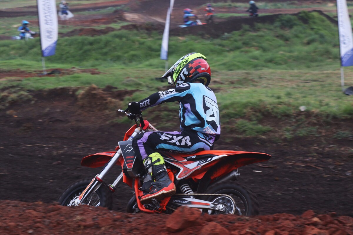 MX65cc. Heat 1. With a puff of smoke, the youngsters charged into the first corner. They came through turn one cleanly and jumped the tabletop. #117 Trey Dean followed the ideal lines and secured 1st place. #20 Luan Jordaan crossed the line in 2nd, followed by #88 Reestin Bartlett in 3rd. Heat 2. Jordaan was clearly determined to end the season on a high note. He held the throttle wide open to secure 1st overall. Dean settled for 2nd, and Bartlett finished 3rd.