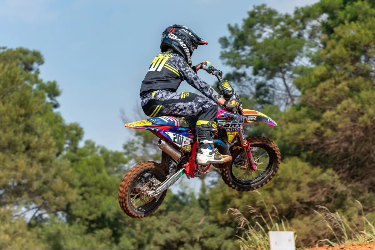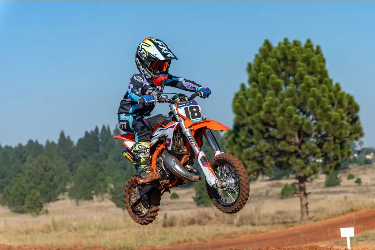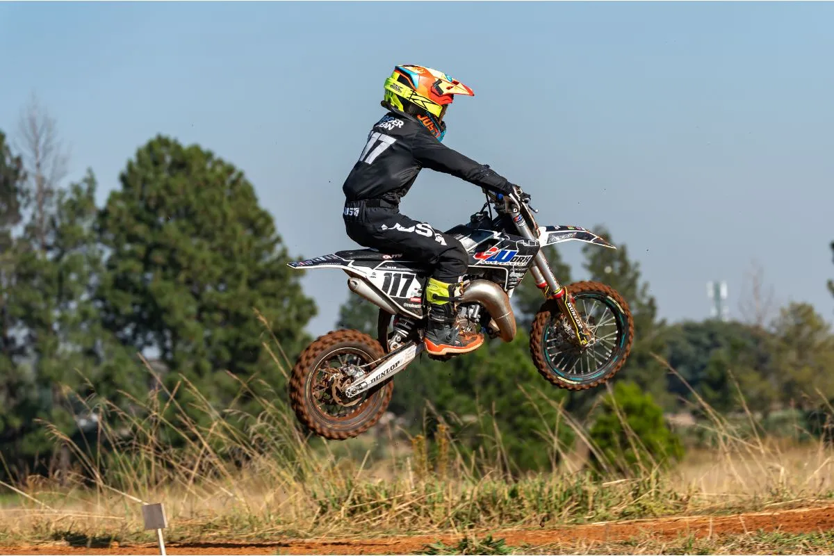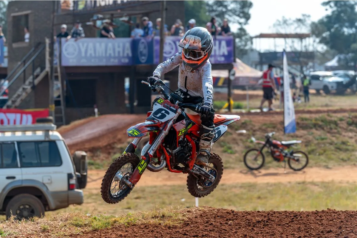The kids on the 65cc had a cracker of a start and just got better from there as they battled for the win. #201 Hanru du Plessis and #117 Trey Dean took their fight all the way to the end, with Du Plessis snatching the win. Dean followed in a very close 2nd place and #20 Luan Jordaan took 3rd.