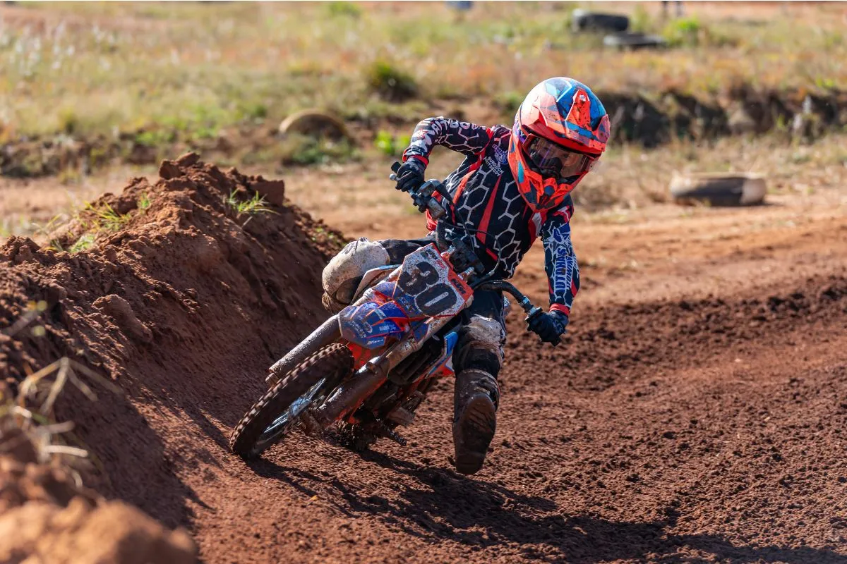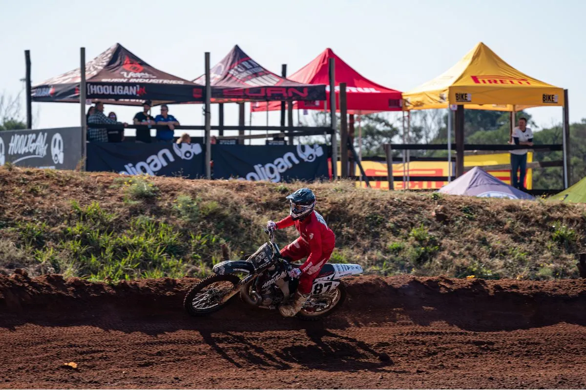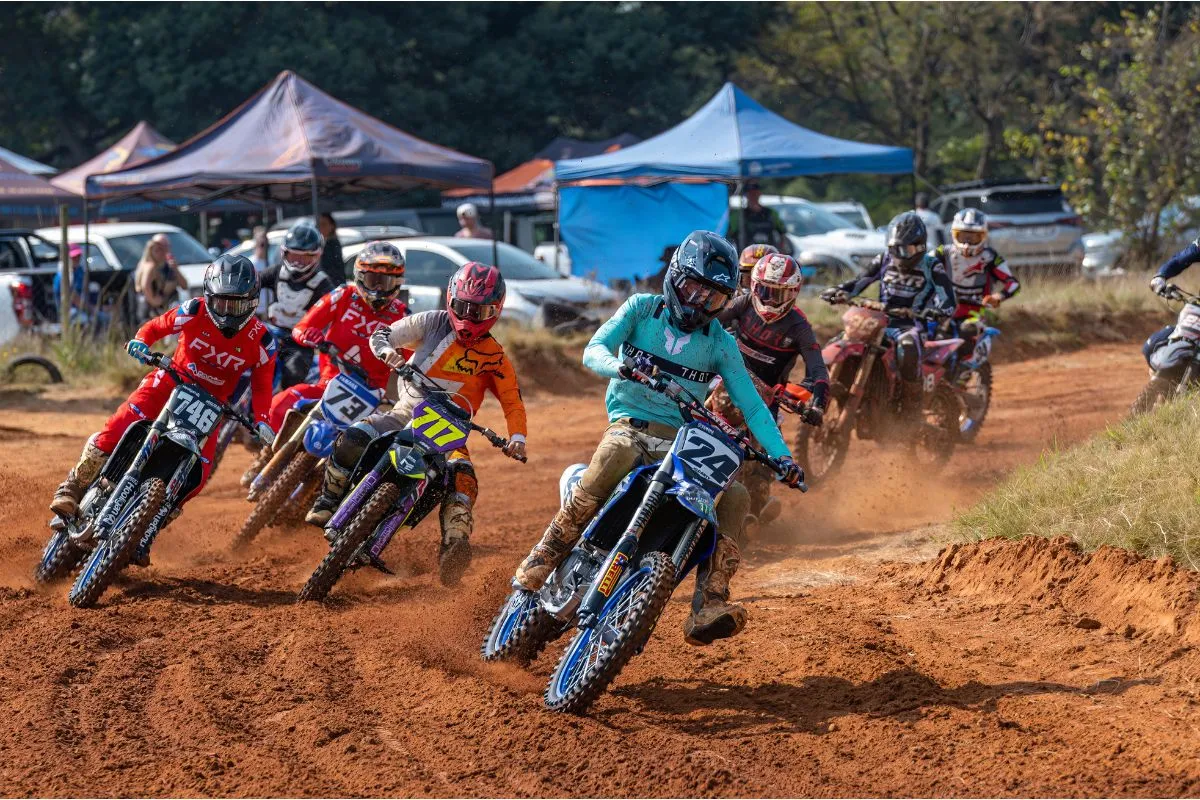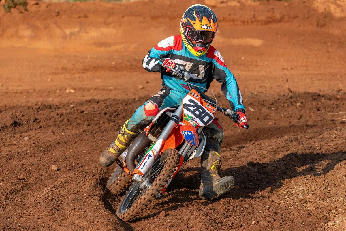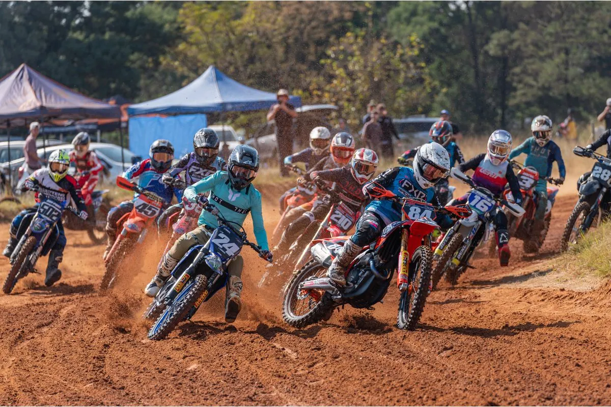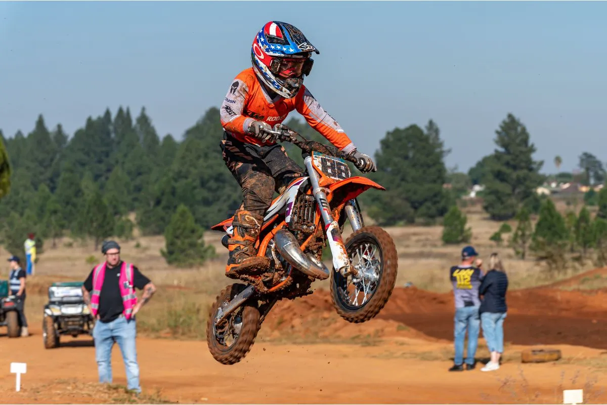 The MX2 class had a lot of excitement throughout the pack with all round good racing.  #24 Mark James Carty came around the last corner to win. He was followed by #38 Ethan Louw in 2nd and #84 Marco Cherti in 3rd place.