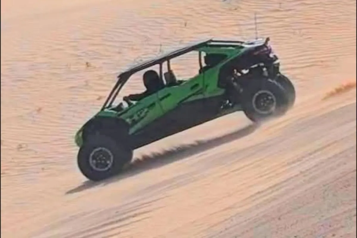 The Glamis Sand Dunes, near Brawley, California are the hot spot for all things four wheelers, and where a lot of Side x Sides get tested during development. Somebody, enjoying some midweek quiet time out in the dunes heard a wailing, snorting and whistling of something that sounded a lot like an H2R coming across the dunes at speed in their general direction. Thinking some maniac had fitted their H2R with sand paddle tyres and was playing in the dunes, (which seems to be a thing in the States on social media these days), they got their camera ready.