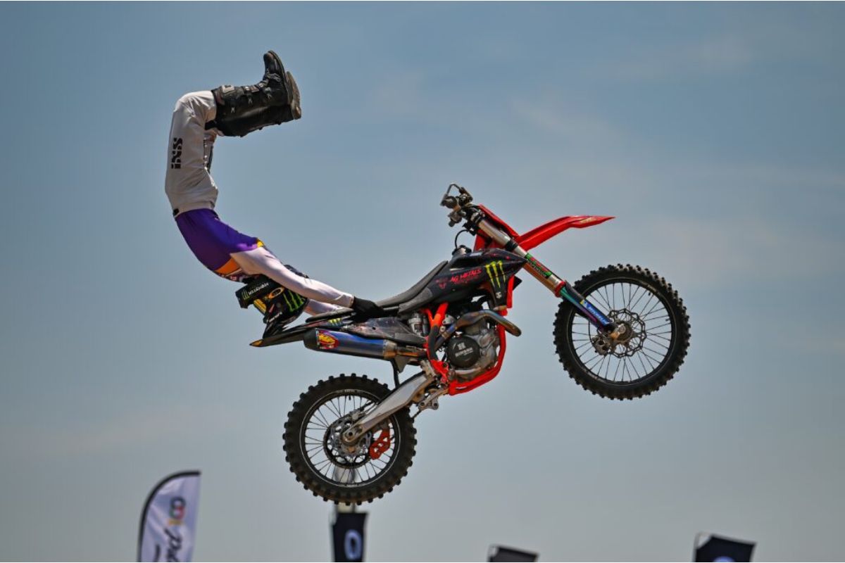 It’s when a rider launches off a jump and flicks the bike sideways midair, sometimes flat, sometimes beyond flat, before snapping it back to land cleanly. The more outrageous the angle, the smoother the snap back, the more the judges… and fans love it.
