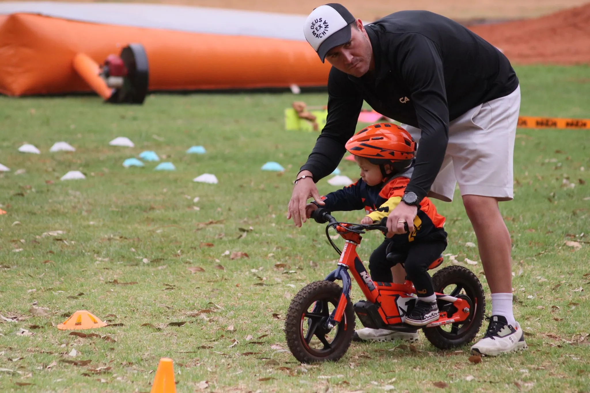 The kiddies were not forgotten and the group even laid out a course where they could try the little electric bikes – on the grass, so if they plopped over it was all safe.Â