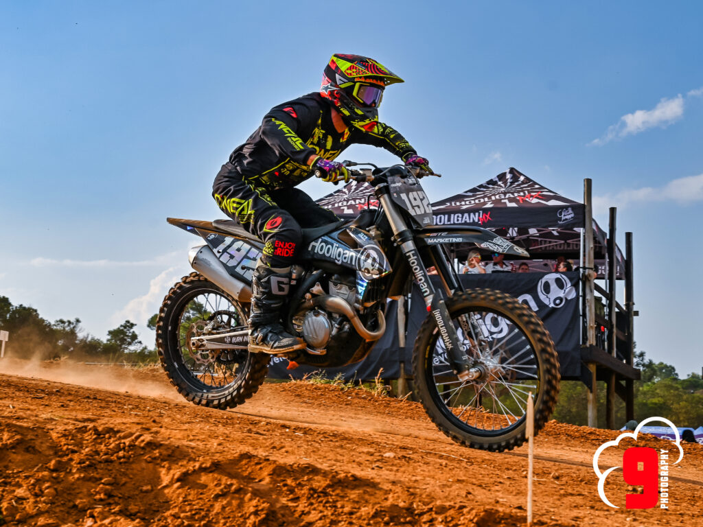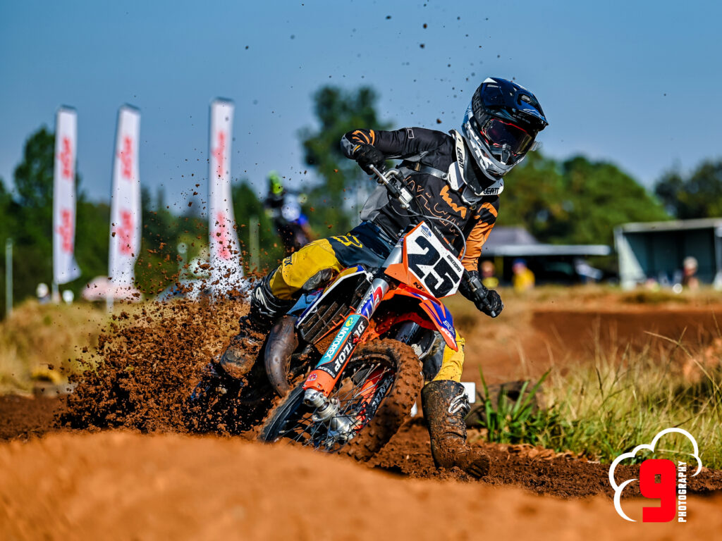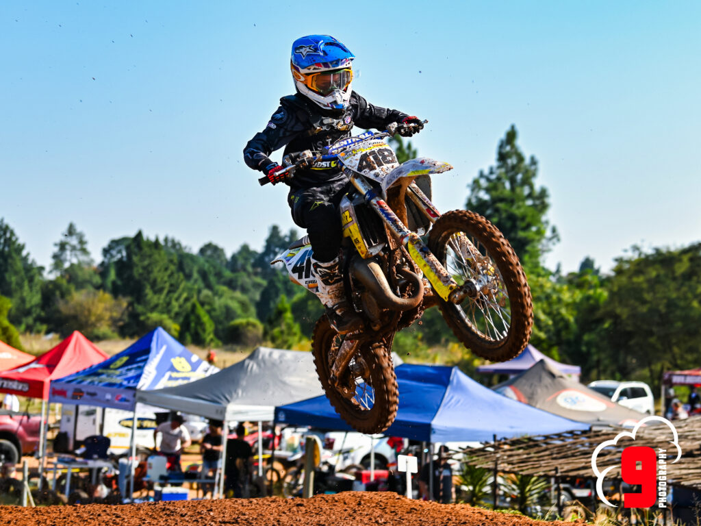 It was a chilly morning at the Kempton Park MX track. An ‘In Person’ riders briefing was held to reiterate the importance of the flags and the rules. Practice kicked off at 8 am on a slightly muddy track with the senior riders cutting racing lines in the freshly prepared surfaces.