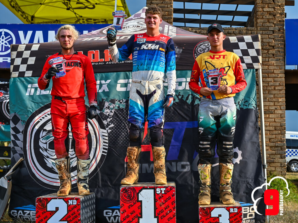 The older veteran class had some very tight racing. No.1 Brandon Wheeler taking top honors with No. 11 Sarel Prinsloo and No.222 Morné Earl taking the remaining podium positions.