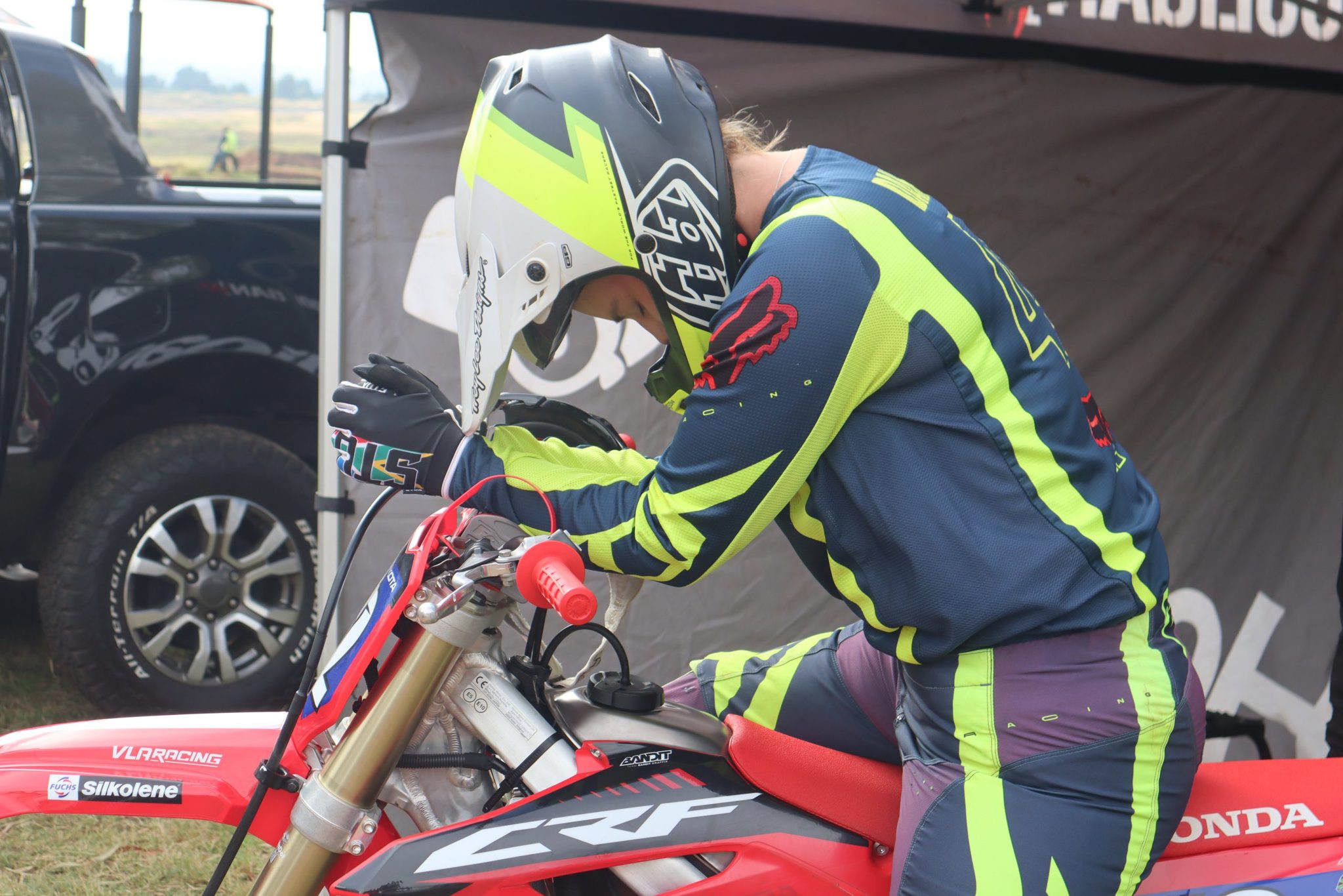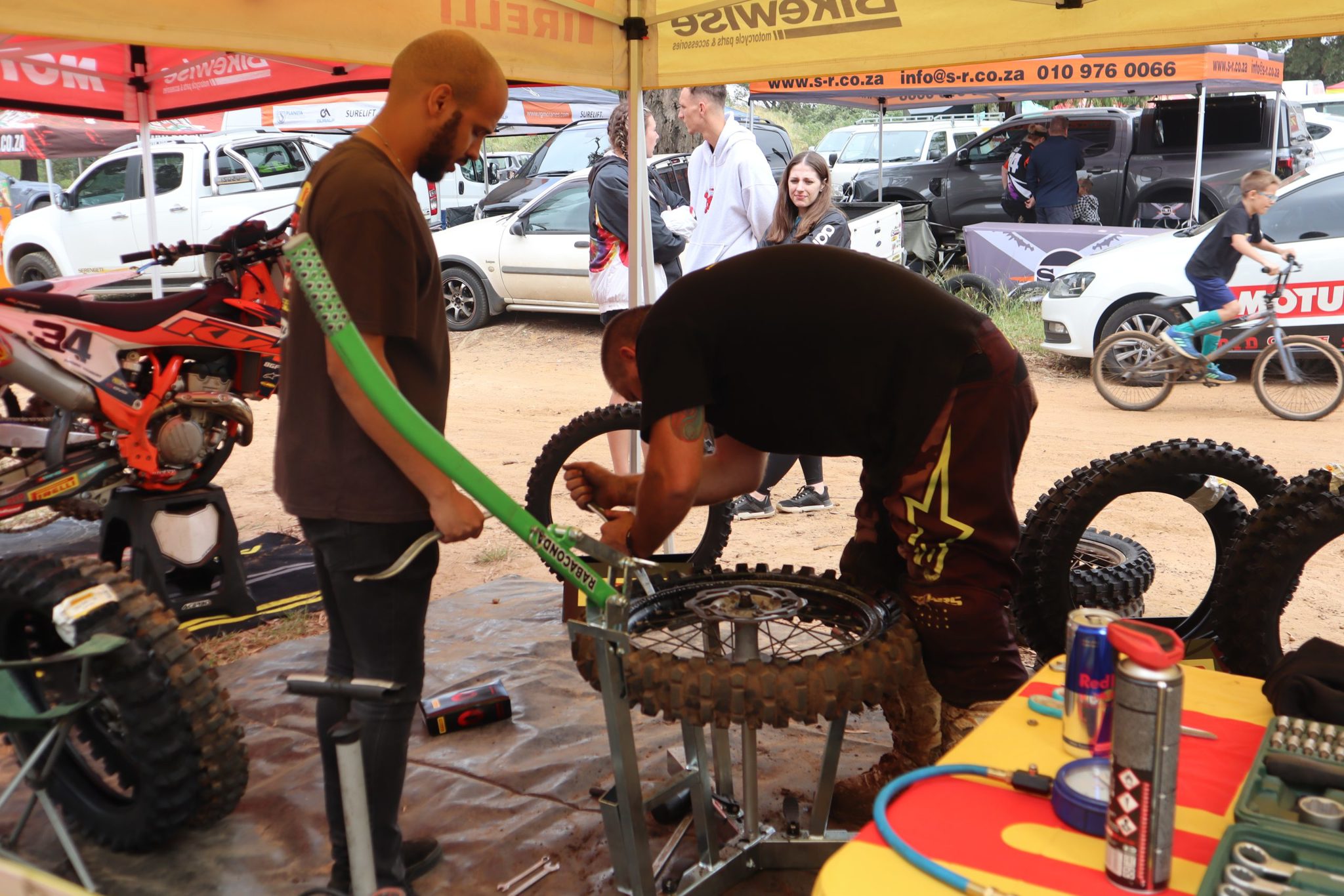 Race 2 – Once again it was all about the Wheelers as the siblings out rode the pack. #135 Dean beat his brother to 1st place by 10.230sec and #73 Brandon out ran #717 Wayne Meyer by 11.181sec for 2nd. #718 Lottering crept closer and closer to Meyer and on the last lap of the last race trying to pull away a tear off, Lottering went down hard and got knocked out in the process. The Medics responded within a few seconds to help out James. He was taken to the medic centre and after a good check up James walked away with a few bruises and a slight headache, but he walked away to fight another day.