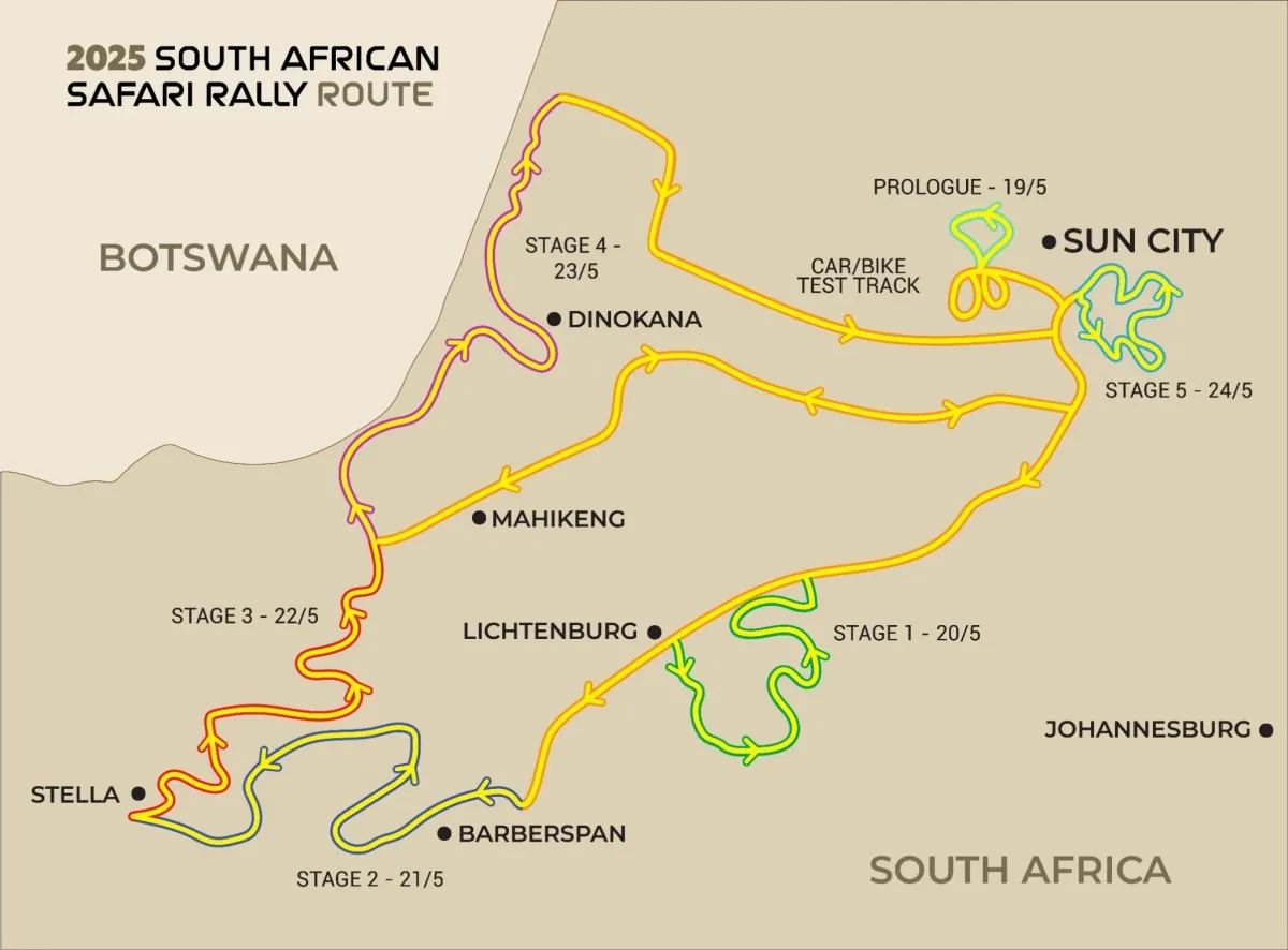 The SA Safari Rally will form round 3 of the 2025 World Rally-Raid Championship (W2RC) and is taking place at the Sun City resort in North West Province from 18 – 24 May 2025. The event will cover 2 600 km sections, and a two-day marathon stage.