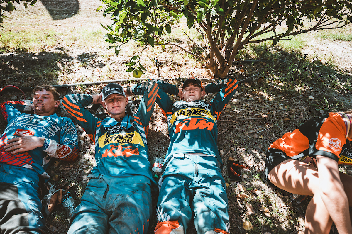 Reflecting on his weekend, James Moore shared, “I went 5 kms off track on the first lap but managed to screw my head back on and settle into a good rhythm! My bike felt super good on such a demanding track. Day two wasn’t the cleanest either, I got sent over the bars after a wire wrapped in both my front and back wheels, and then broke my banjo bolt on the back brakes on lap two. But I managed to come back swinging and take the win in E2 again.”