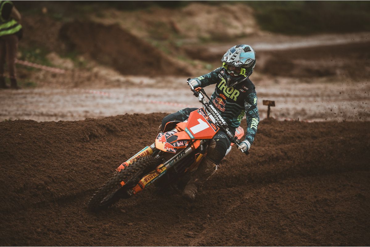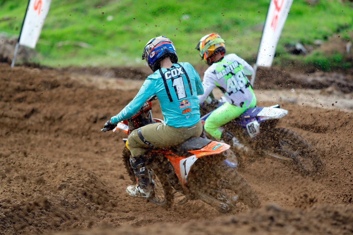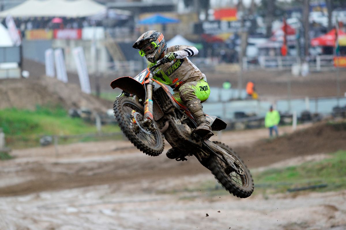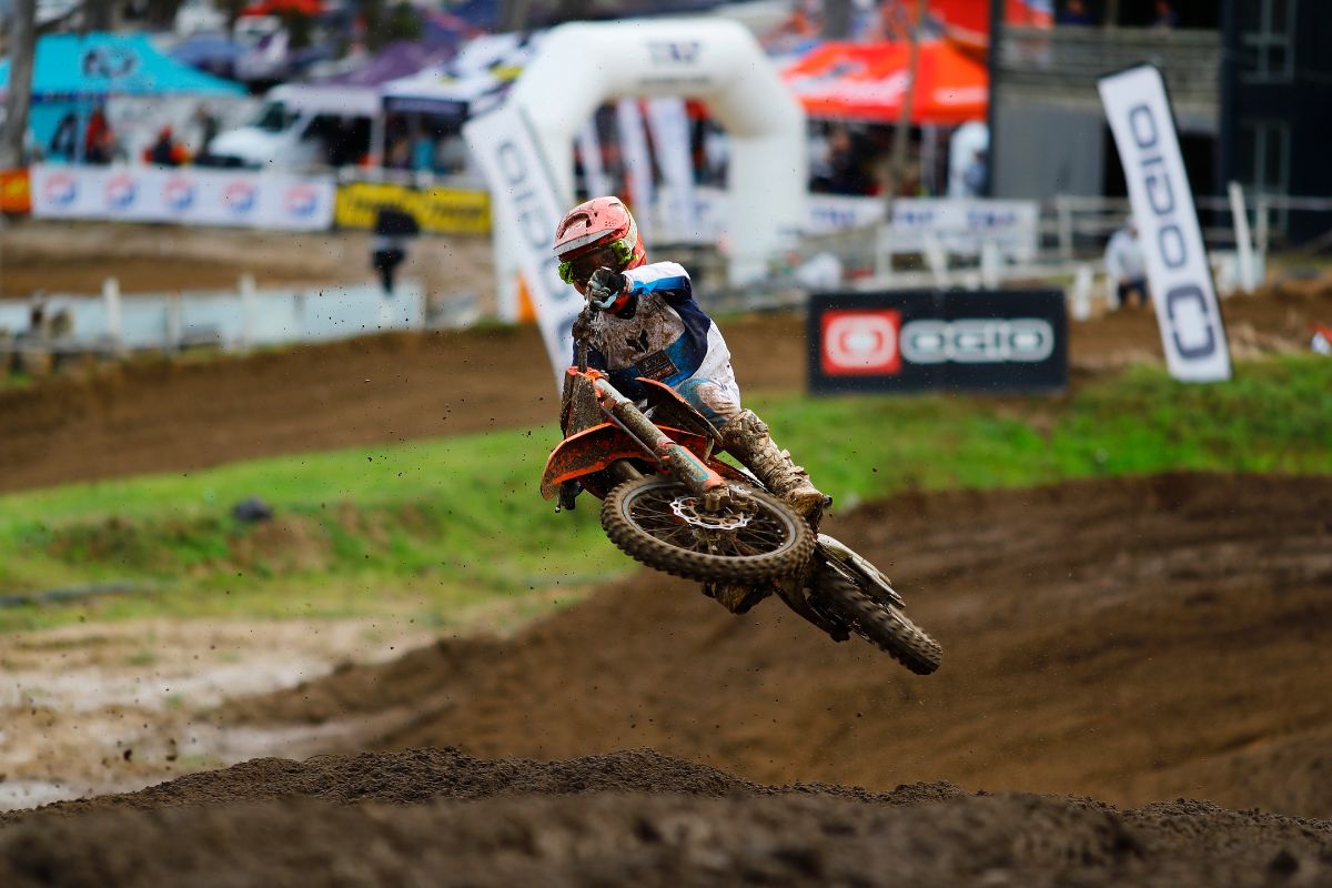 With a spray of mud the MX2 riders flew from the gates and took the fight to one another.Â