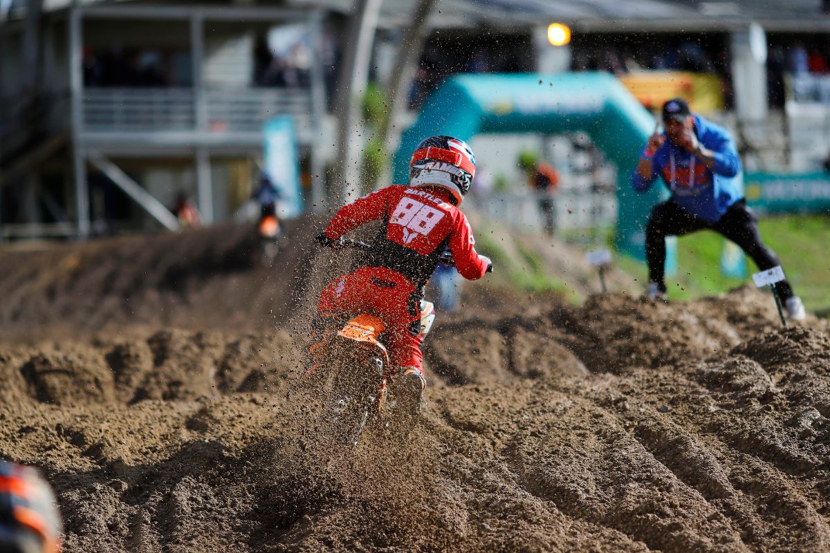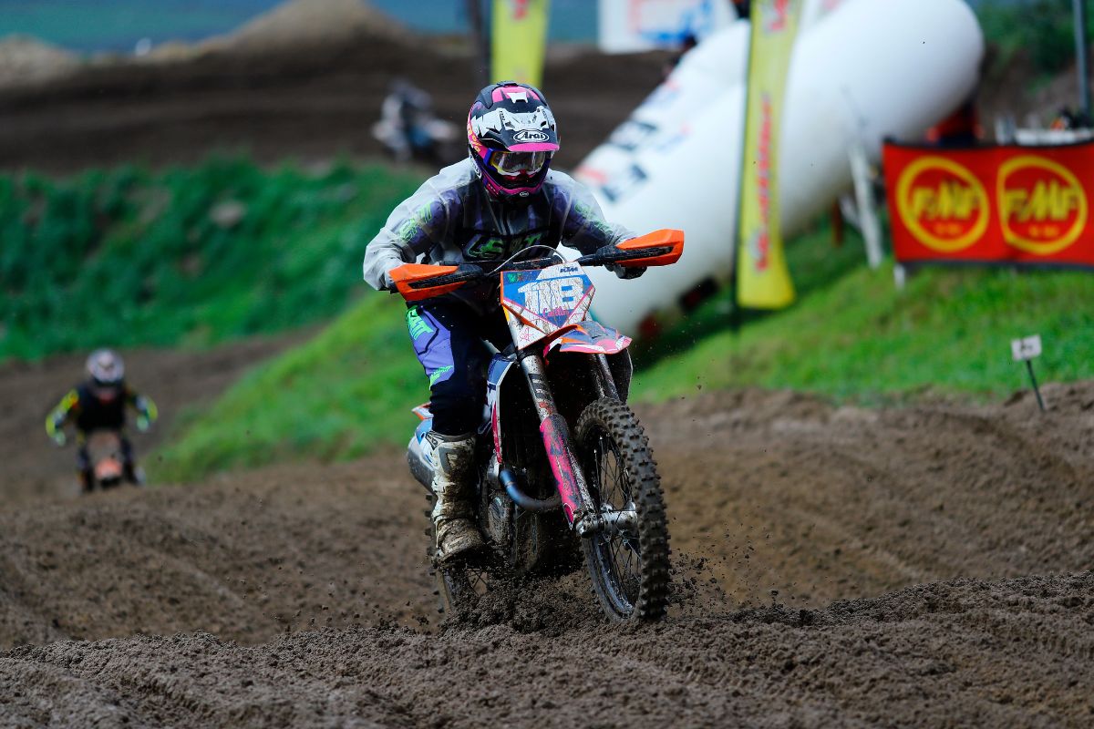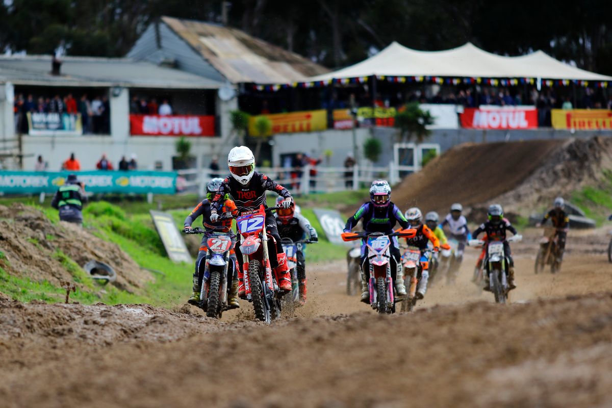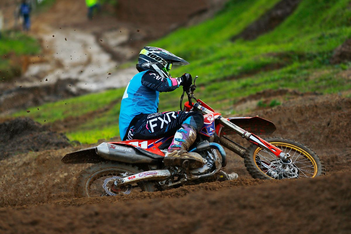 With a spray of mud the MX2 riders flew from the gates and took the fight to one another.Â