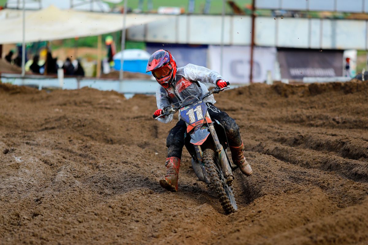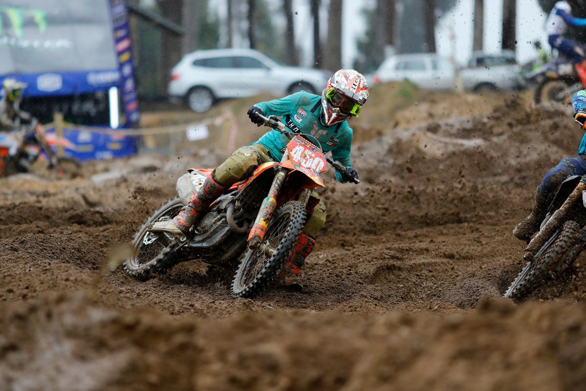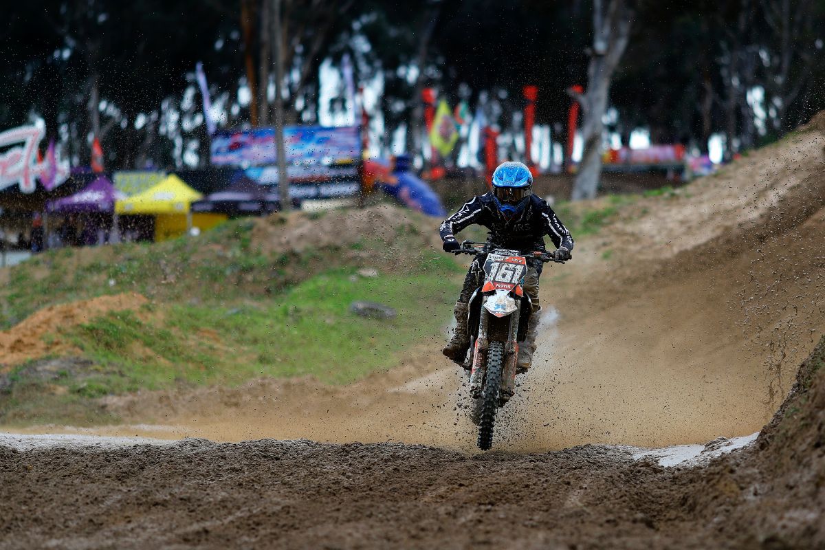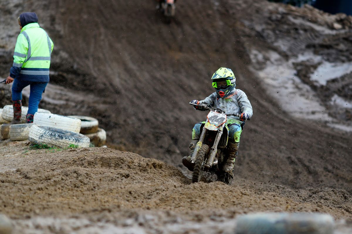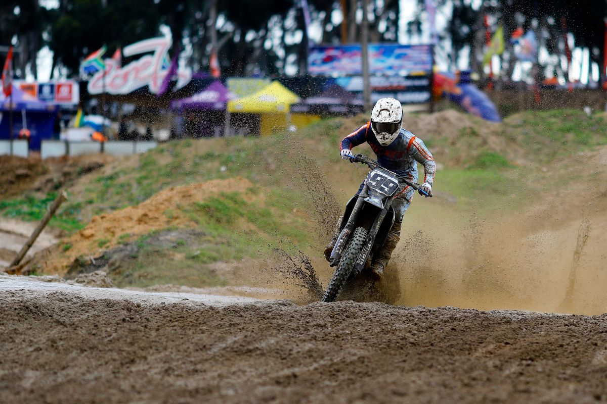 It was a cold and wet day at Zone7 for Round 5 of the National MX Championship. The track was super muddy with the digger working overtime dispersing water. Thanks to track owner Johann Spies and his crew for prepping a rideable and safe track despite the heavy rainfall leading up to race day. The conditions were gnarly but a great turnout of 128 riders showed up to bang bars for the weekend.Â