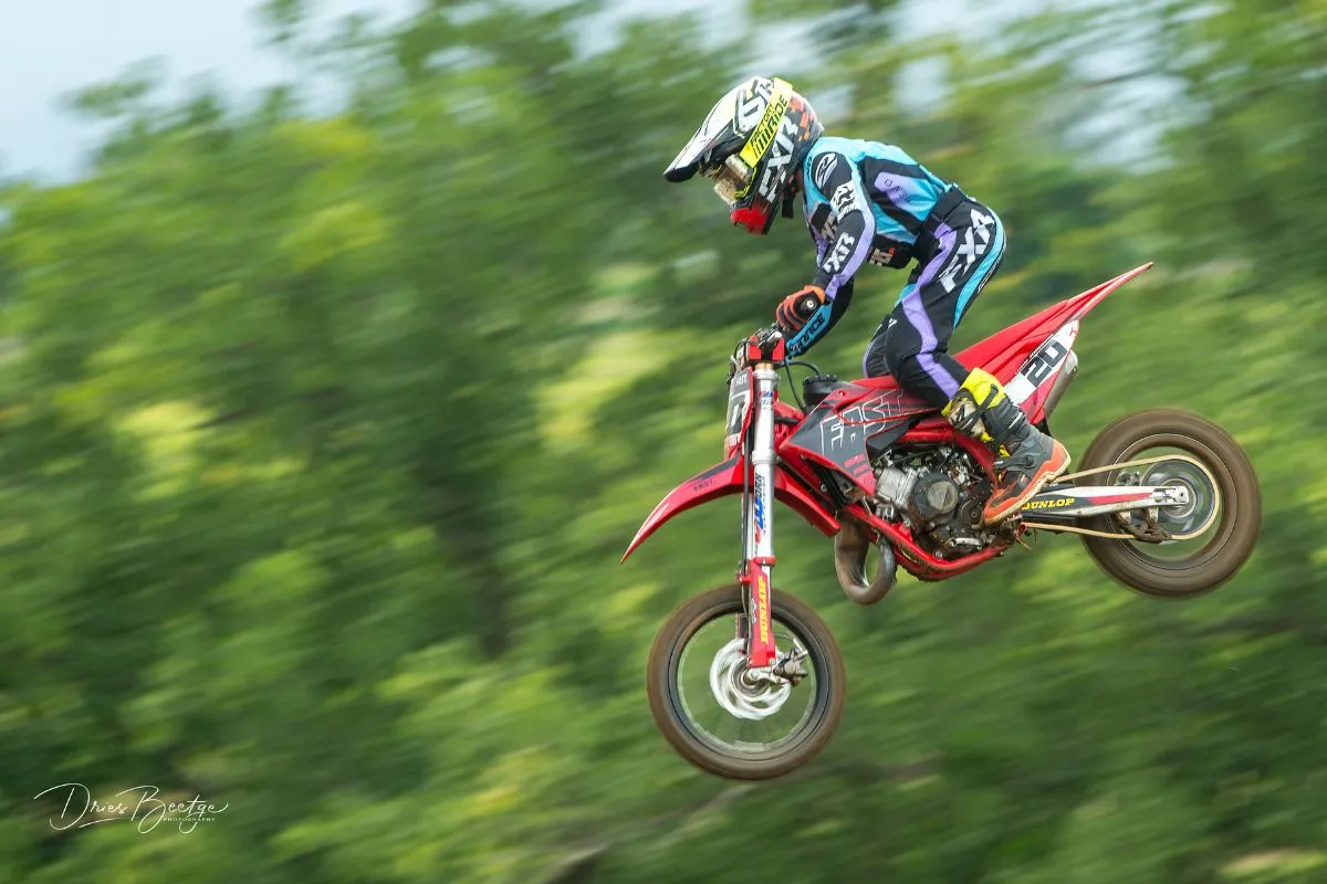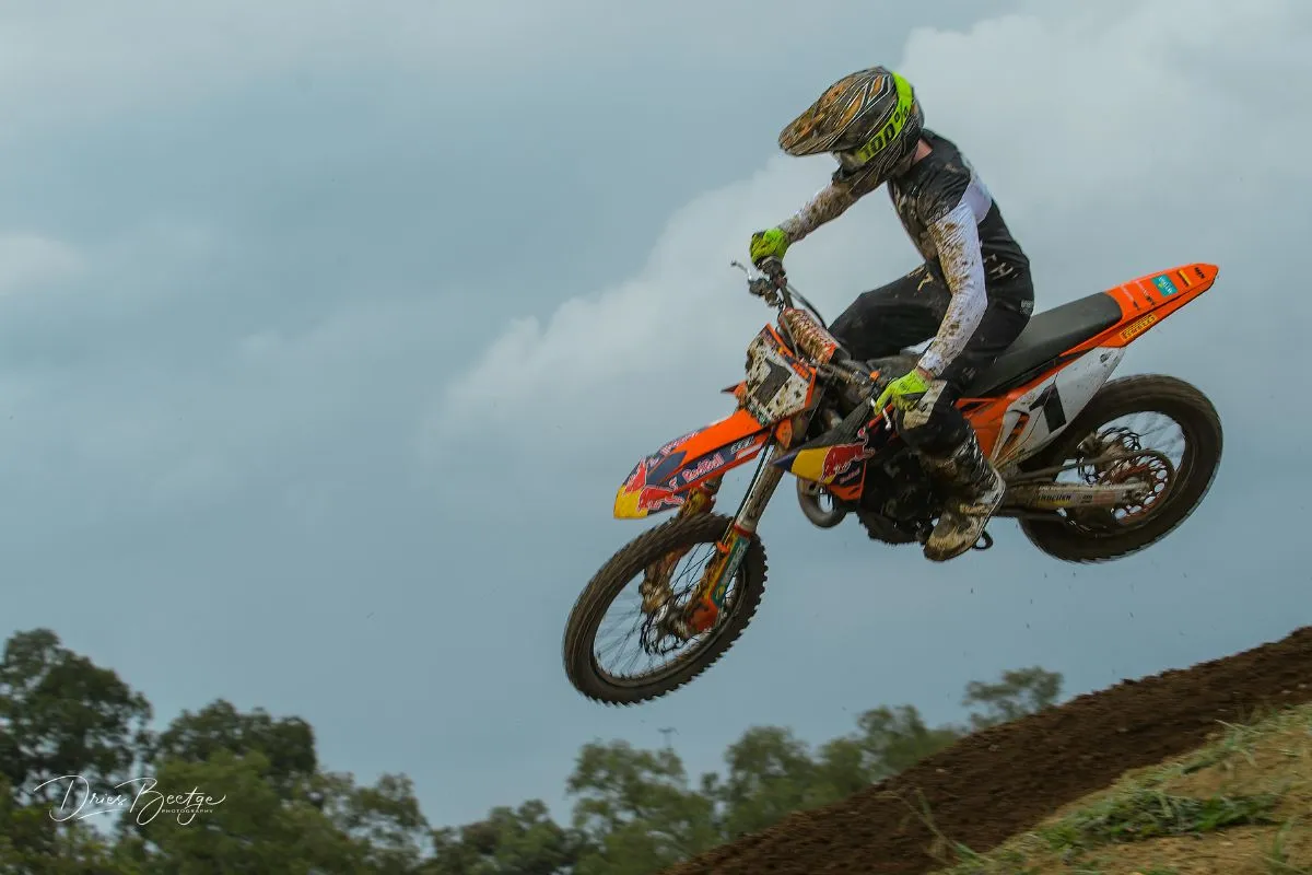 With his throttle fully open as the gates dropped #450 Luke Grundy the KTM Rider kept it pinned. He had a great run as he took 1st place, #24 Mark James Carty followed through with 2nd followed be #34 Trey Cox in 3rd.
