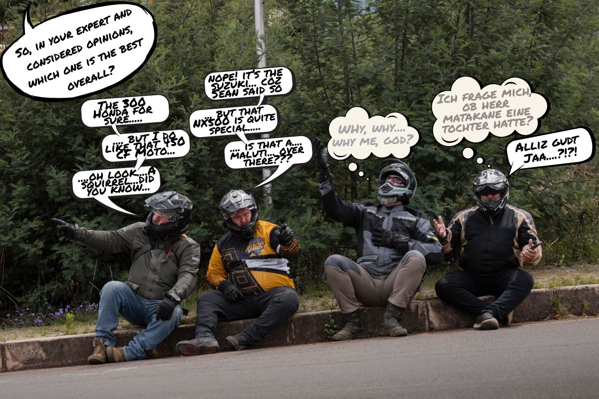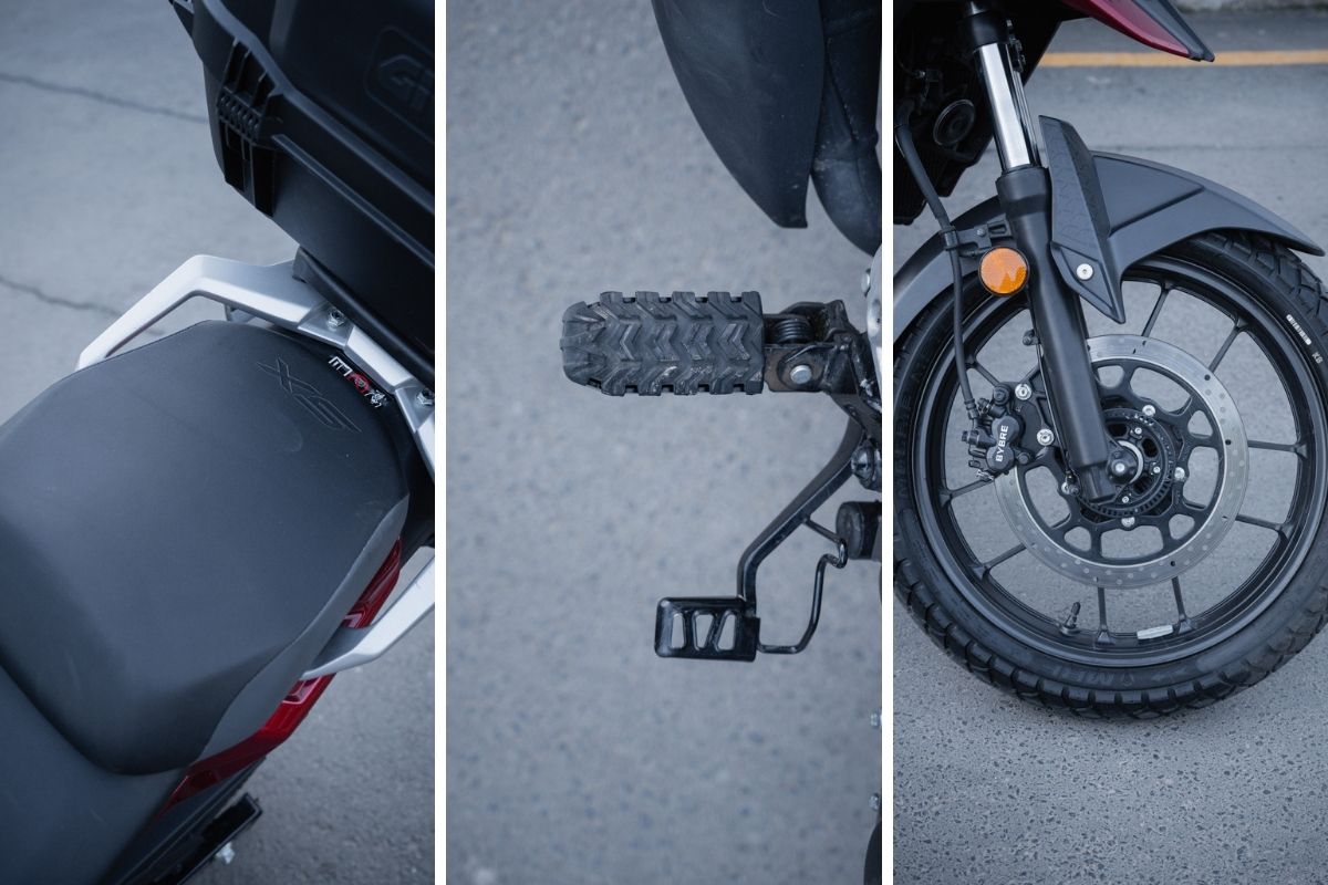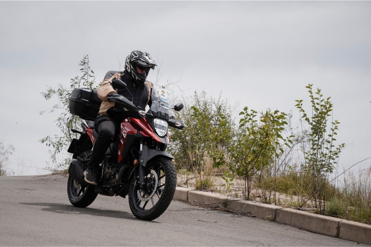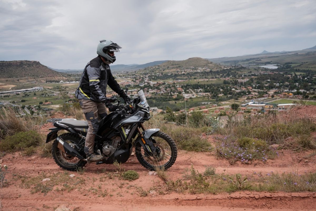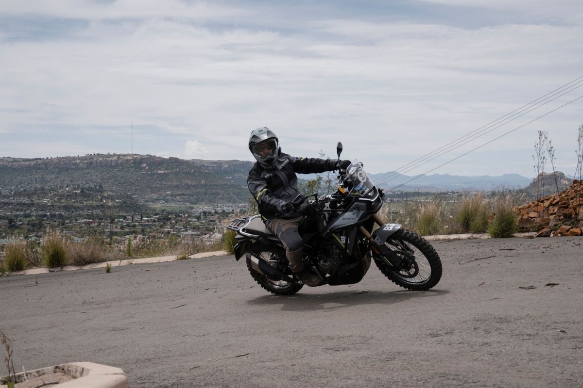 Peter the German Bomber loves the low 790 mm seat height, “finally a bike that fits me!” and used it to weave through Maseru’s chaotic traffic like a scooter with attitude. The only complaint from him was swinging his leg over, the top box kept getting in his way. Glenn jumped on for a few sections and came back saying “Great bang for buck, it simply refuses to feel cheap or slow.”