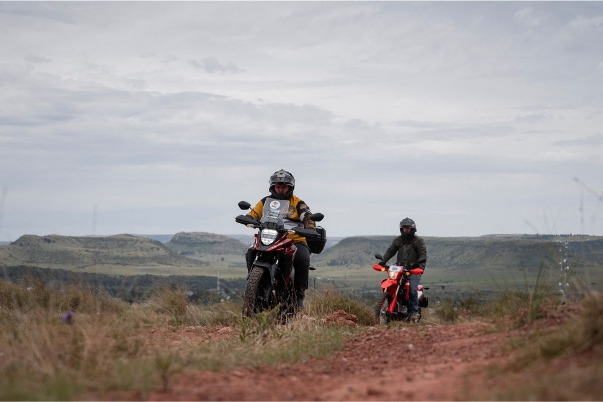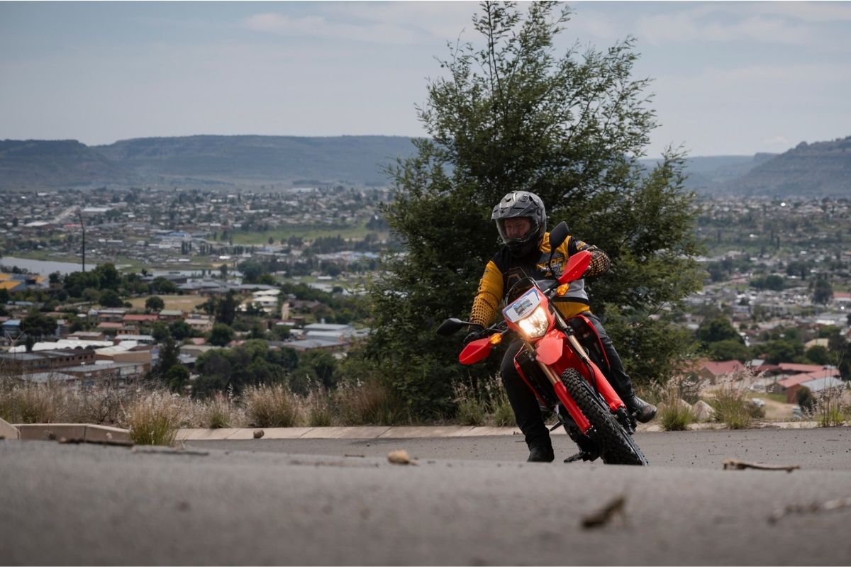 Sean attacked sweeping Lesotho passes supermoto style, knees out, laughing like a lunatic inside his helmet. Yes, the seat is wooden, the 7.8 L tank caused proper fuel anxiety in the middle of nowhere, and the knobbly tyres howl on tar, but everyone forgave it because “It’s a dirt bike being forced to play on the road, of course it’s going to have certain limitations.”
