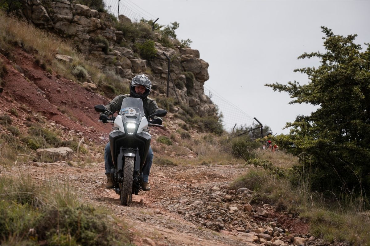 Peter remembered riding one the last time he was in SA and happily rode it up the atrocious road to Music Box without any drama. In fact, he spent more time than anyone on the little CF Moto and he only had good things to say. “The offroad tyres do affect handling on the tar, so I checked the pressures a few times, but I was glad that they were fitted for when I hit the dirt sections. For the longer journeys, this and the 500 Honda were my two most comfortable, but for off-road, the bigger wheels made more sense and traction for me.”