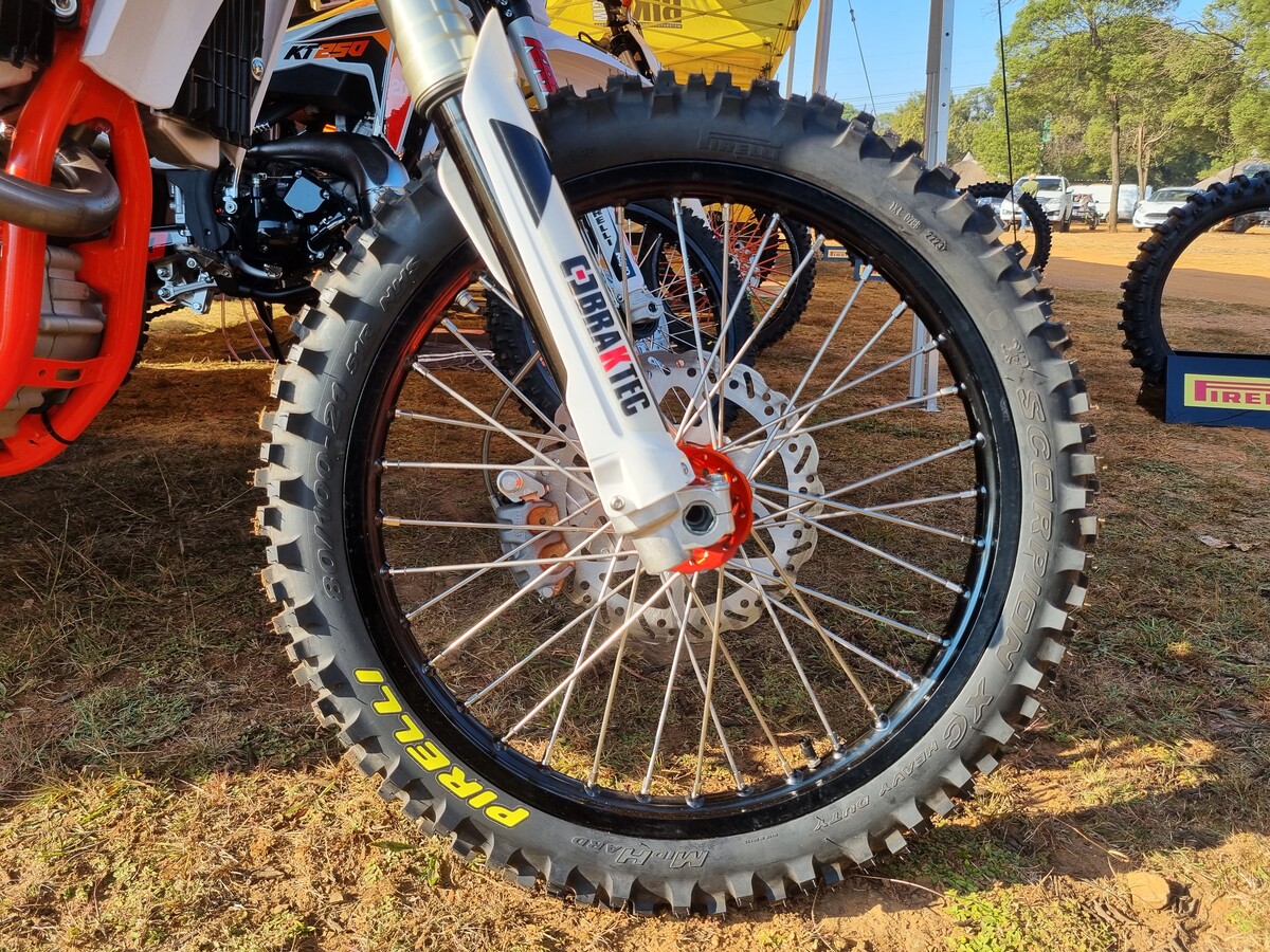 We went along to catch the action and catch up with the news on the latest MX 32 Mid-Soft Technology from this rubber giant. What’s very interesting is the fact that this is the first time that Pirelli has updated this design since way back, when Stefan Everts was still world champ.