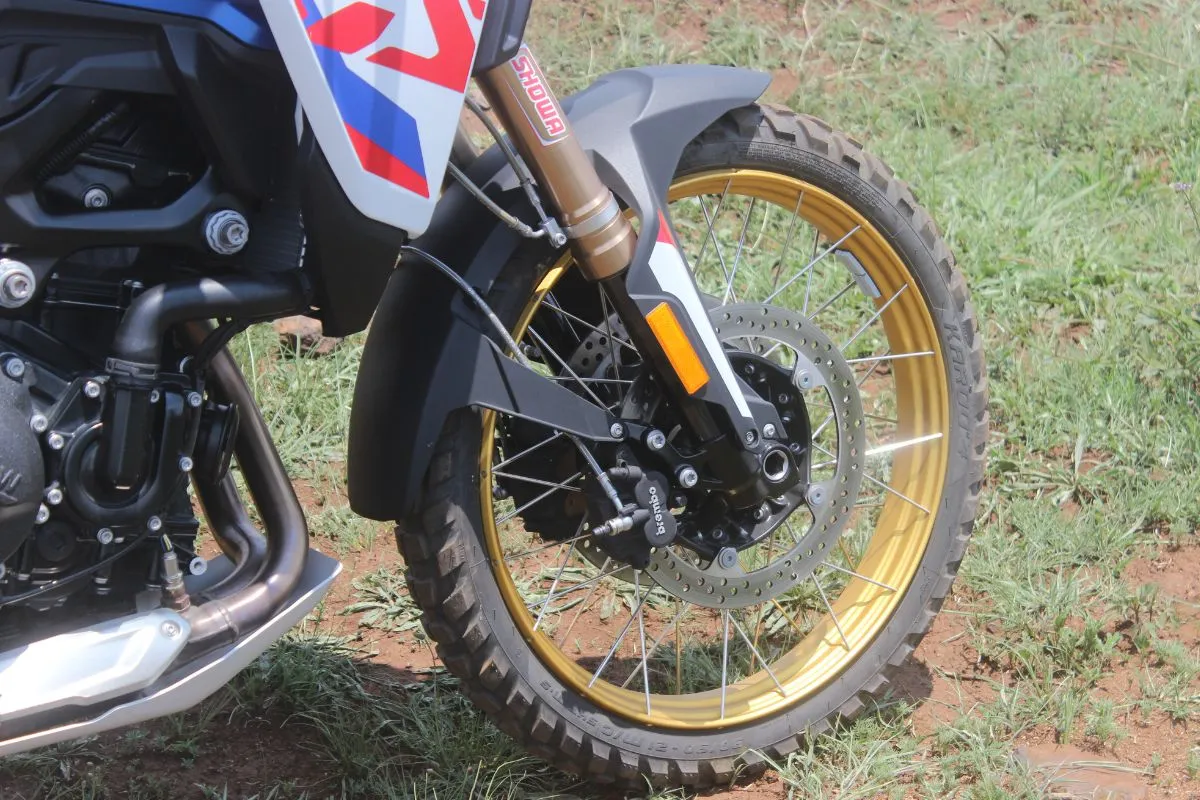 The F900GS rolls on 21”/17” tubeless wheels with fully-adjustable USD Showa forks and a ZF Rear monoshock.