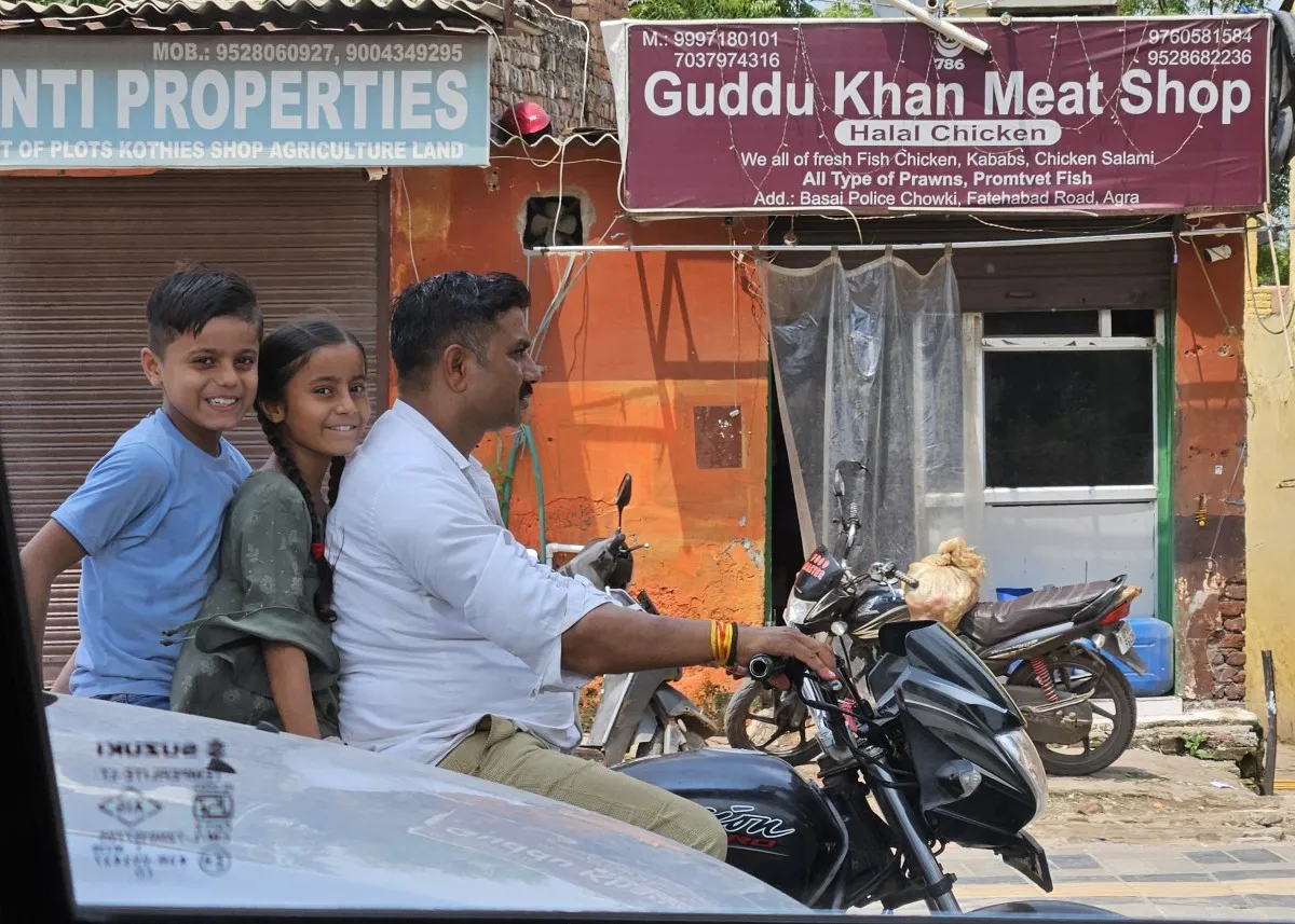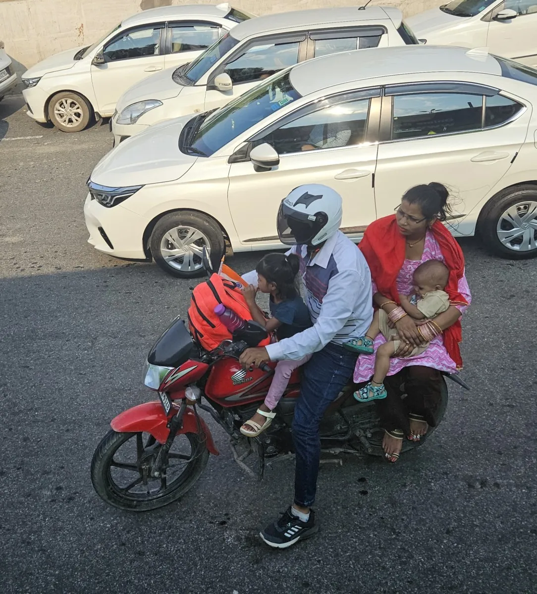 Motorcycles are a way of life in Delhi. Entire families and all of their goods are transported in and around the city.