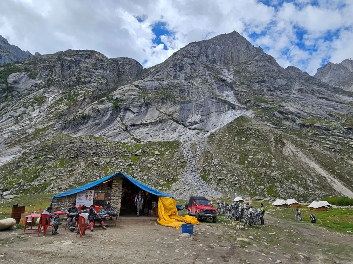 This was an epic adventure – you asked if we’d do it solo, or through a tour operator? We booked through an Indian company called Ride the Himalayas. Our guide for the trip was Raull. Amazing. A great outfit. If we were to do it again, we’d probably book with a tourguide outfit. Solo would be complicated because of local language barriers, rules and customs. Having someone to pre- book stuff and smooth the trail makes a lot of sense. Going solo, you’d struggle. The trouble also comes with the terrain. Landslides, alternative routes… A local person just knows how to react and get stuff sorted.”