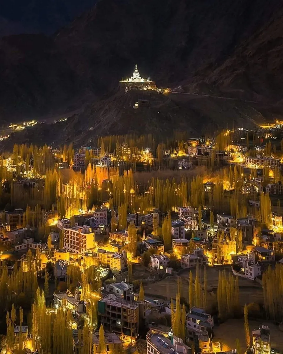 Leh at night. The highest inhabited city in the world. the highest airport in India.