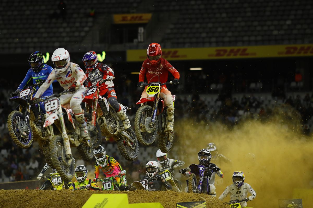 Instead of long outdoor tracks where the action disappears into the distance, Supercross takes place on compact, man-made circuits built inside stadiums and arenas. That means fans are closer to the riders, the jumps are bigger, and every moment of the race happens right in front of you.