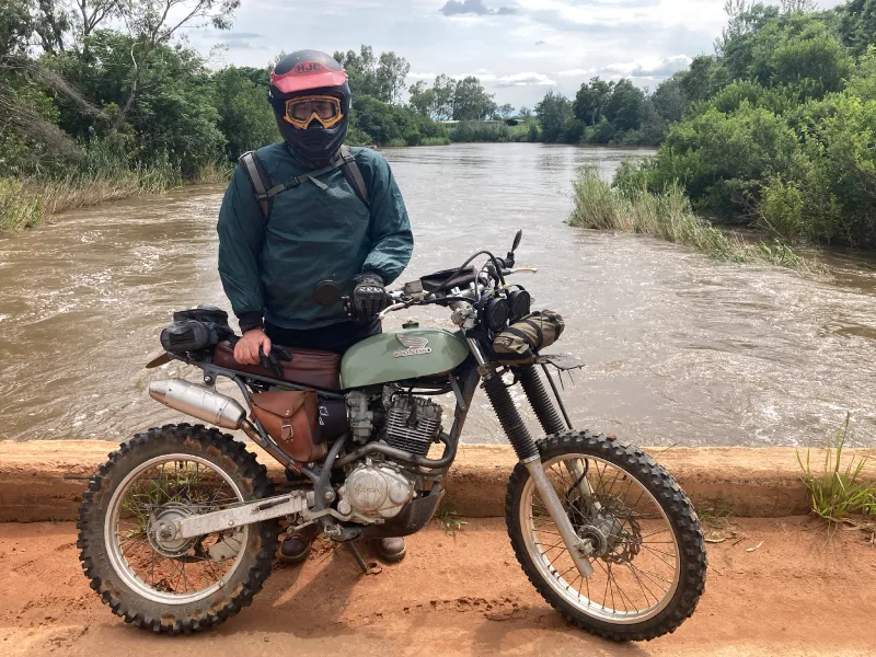 Near Bronkhorstspruit it started raining heavily and abruptly, the CRF230’s stutters returned. Suddenly I realised, it was my exposed café racer design sponge air filter that got wet every time it rained and then water was sucked into the carburettor! A disappointment and a relief at the same time as I knew it was a problem which could be fixed easily!