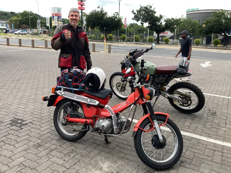 I met Gustav Eybers a few years later, a very interesting character, who at that point in time must have owned probably more than 50 motorcycles of which some were unique collectors’ bikes. What struck me most was his keen interest in smaller motorcycles, vintage scooters and rare models such as Honda Monkey bikes and the likes. Amongst other bikes, he currently owns two Honda CT 110’s a Honda CT 90, and a Honda ANF 125. This is a guy who will think nothing of jumping onto a Honda CTX200 farm bike and riding it all the way from Cape Town to Pretoria. Or rocking up with the same farm bike and doing an organised enduro ride in Wakkerstroom with his windbreaker and vellies, amongst all the fancy 300 two stroke riders with their latest kit and then departs with respect!