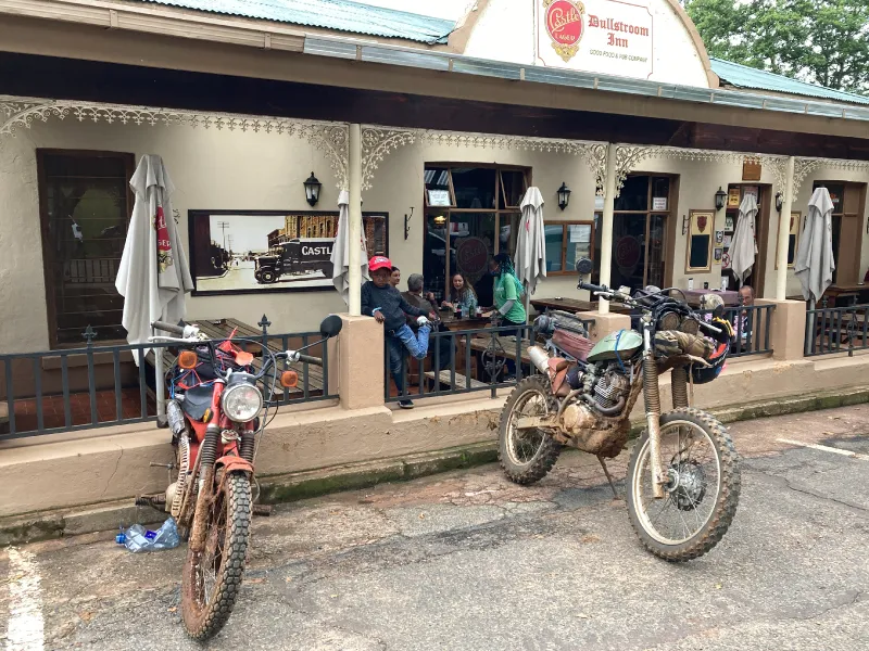 After our increasing gain in confidence in the mud we decided why not do a quick in and out to Tonteldoos for a softy at the famous Highside Tavern. We were happy to hear from the always friendly manager, Tanya, that the tavern was still in operation. Although we will miss the passionate fellow biker and previous owner Peter McBride, the pub is now in the competent hands of another passionate adventure biker.