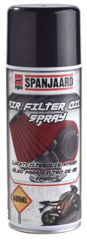 Once your air filter is clean and dry you then need to lube it up properly to catch all the dust particles. Spanjaards air filter oil comes in an aerosol, making it much easier to apply to the filter. It is a tacky formula that prevents the ingress of sand, dust and water, as well as improving airflow to the engine. Protects and extends engine life. Protects and extends engine life. Water resistant and reduces filter clogging and available in a 400ml aerosol