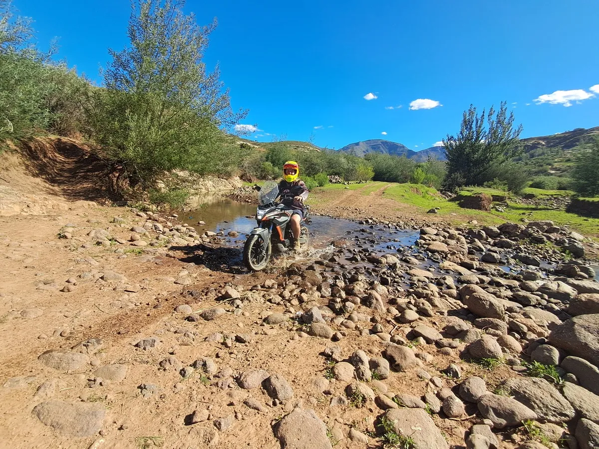 We had 3 bikes and four riders… and on that day, we did 220 KMS – TWO UP, with a combined weight knocking on the door of 180 kg’s on the little 300. Half was fast tar, the rest was gravel if you could call it that with steep rocky climbs, river crossings and tight descents into the hard to reach villages.