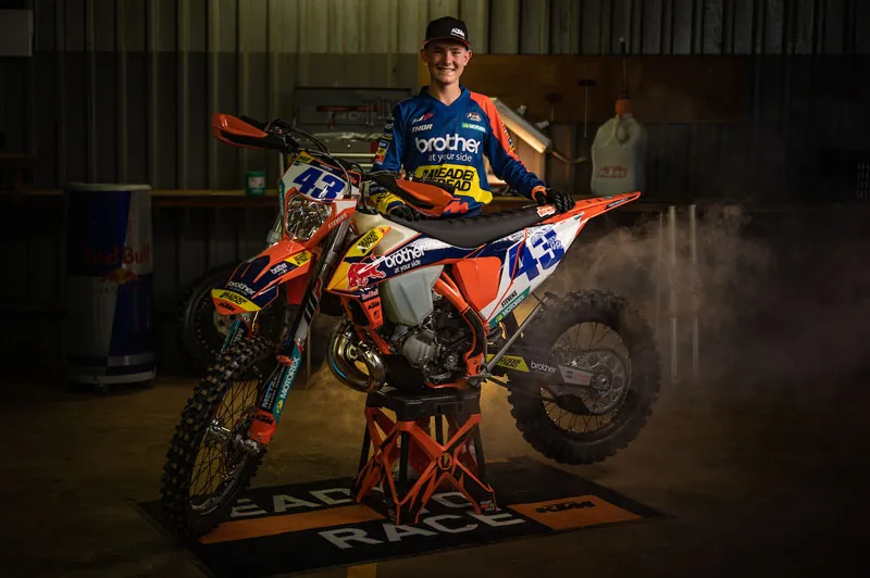 The youngest on the team, Matthew Stevens is the longest-standing member and steps up onto the 150 EXC this year to compete in the high school class.