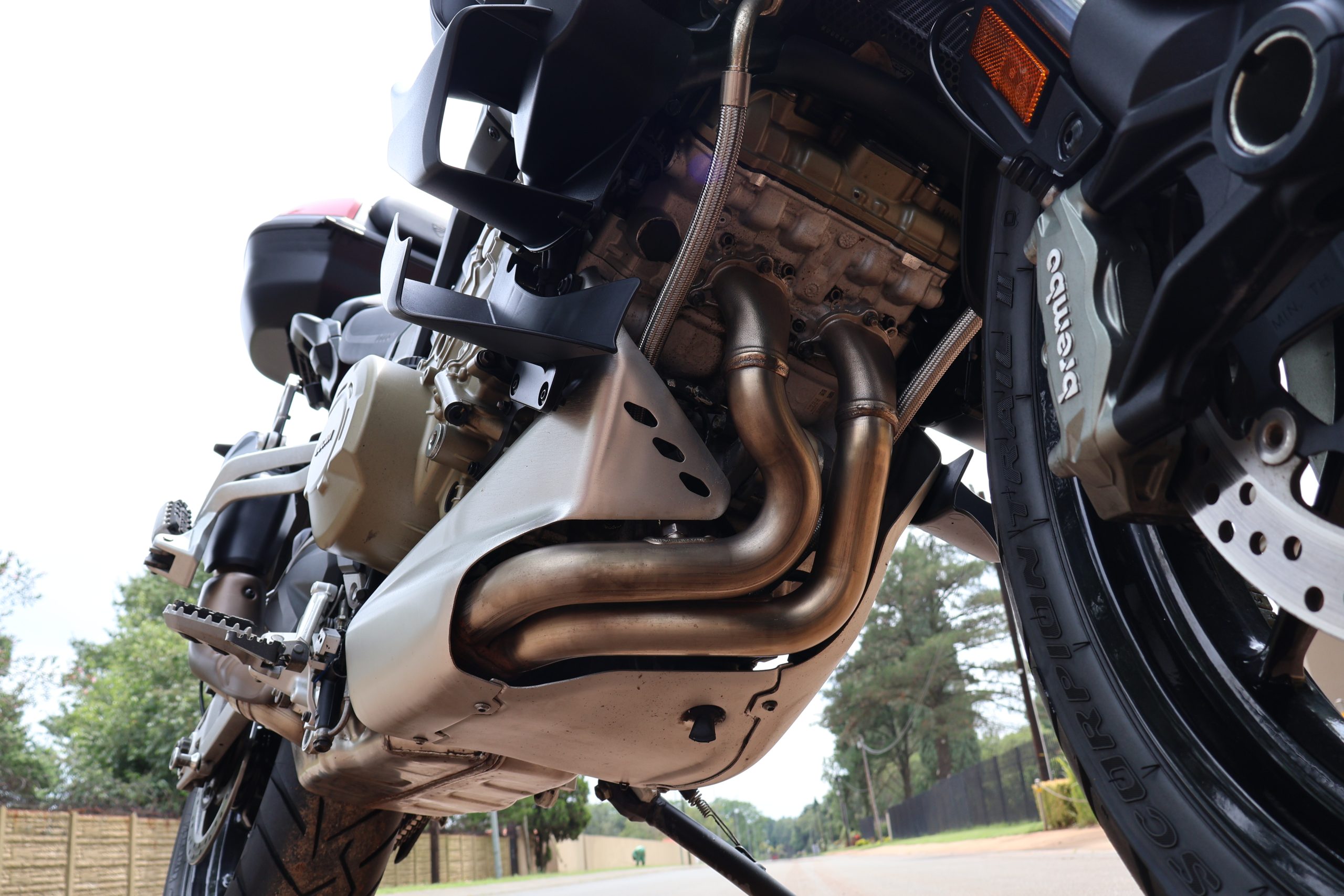 The “Standard” V4 boasts Ducati’s Red color scheme with alloy wheels and silver calipers. It’s shod in Pirelli Scorpion Trail II tyres. It’s the Ducati entry point, offering that marvelous V4 performance complete with electronics and rider modes in an enormously capable chassis that floats on manually adjustable suspension.